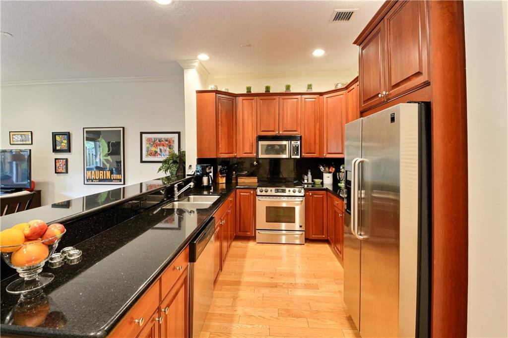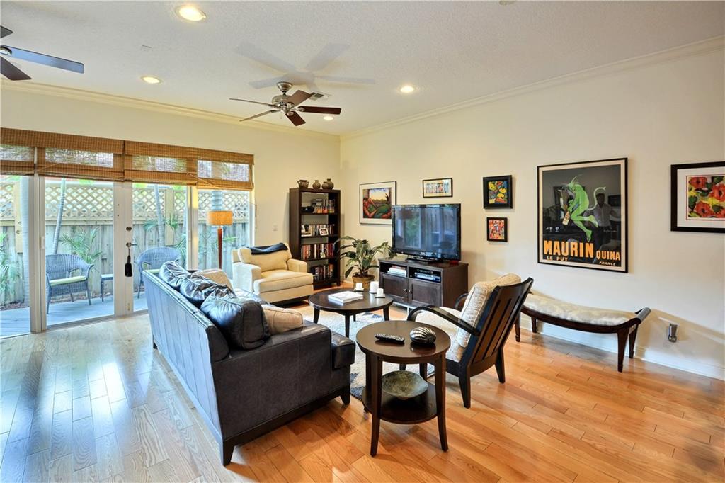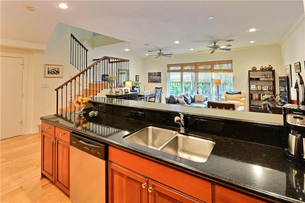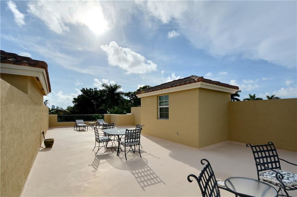Bright & spacious town home offering an open floor plan with the main living area located on the 1st floor. The chef kitchen with great counter space over looks the living room and dining area. A glass wall with French doors affords access to the private & fenced decking area. 2nd floor open loft area (or 3rd bedroom), laundry & large master suite with a custom walk-in closet, lavish bathroom & balcony. Private roof top terrace with tropical breezes & city views. Square footage from survey.