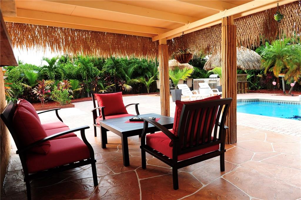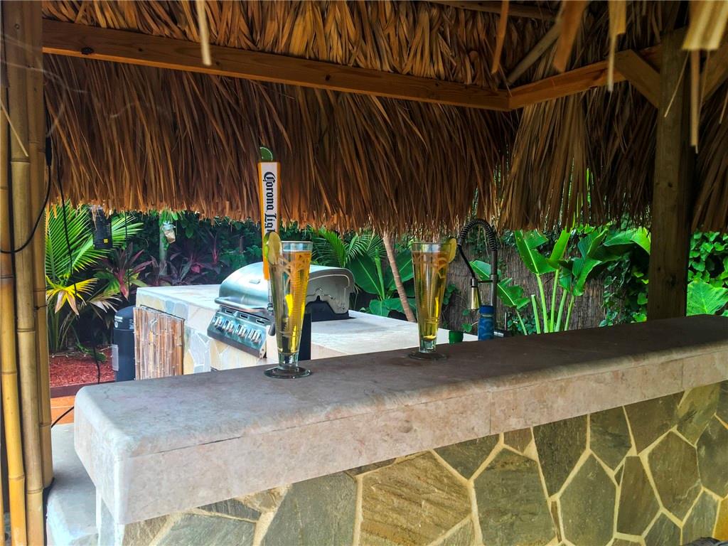 TAKE A VACATION IN YOUR OWN BACKYARD! Hidden gem. Complete privacy, but close to everything - beaches, boating, shops, restaurants. Entertain at outdoor kitchen and bar that have dining area, grill, sink, beer dispenser. Tropical landscaping, salt water pool. Park your boat on 50ft driveway behind automated gates. Tastefully remodeled, en-suite Master BD, SS appliances. Home automation/security. Shed/workshop. Fully furnished, ready to move in. Nothing comparable at this price.
