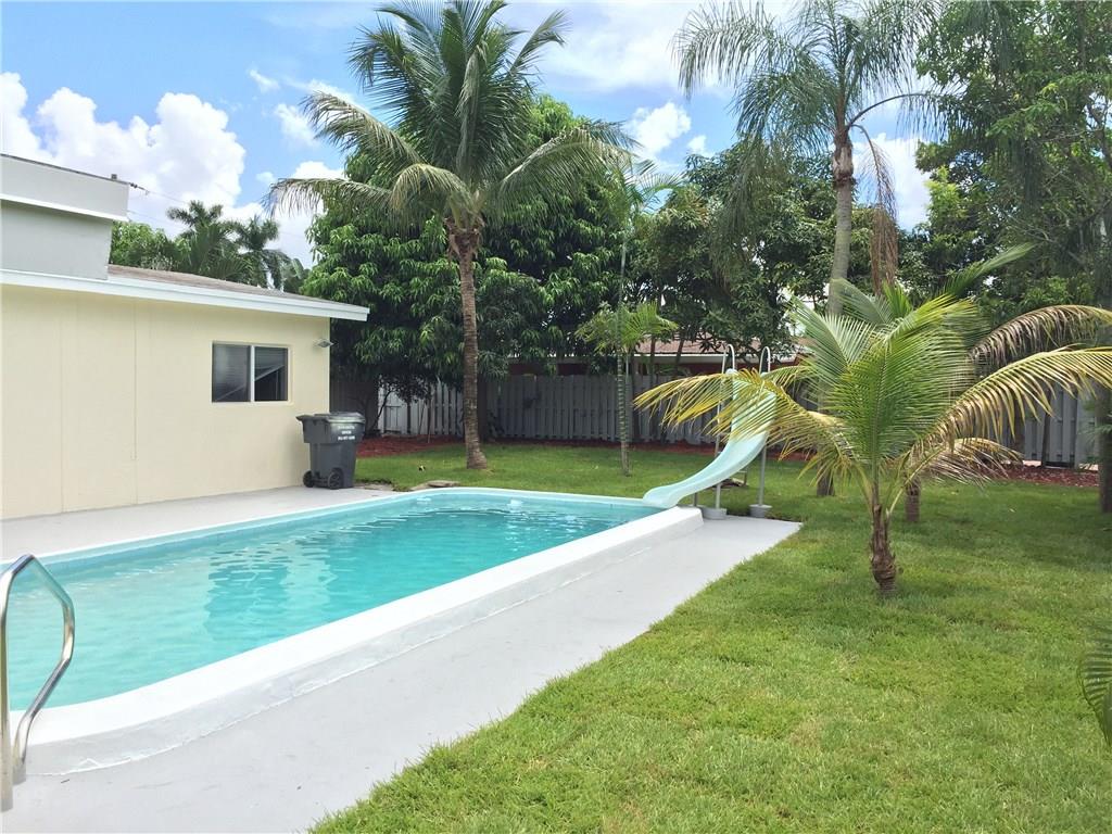 Spectacular remodeled 3/2 home with a bonus room, new from the bottom up, sitting on a 9,000+ sqft oversized corner lot. Newer roof (replaced in 2012), new kitchen, bathrooms, wood floors, and doors throughout the home. Freshly painted inside & out. Kitchen features new custom cabinetry with granite counter-tops, and brand new S/S appliances. Tons of storage space, 2 sheds in the backyard, along with a beautiful large pool. New landscaping in the front and backyard. Hurry, this home won't last long!