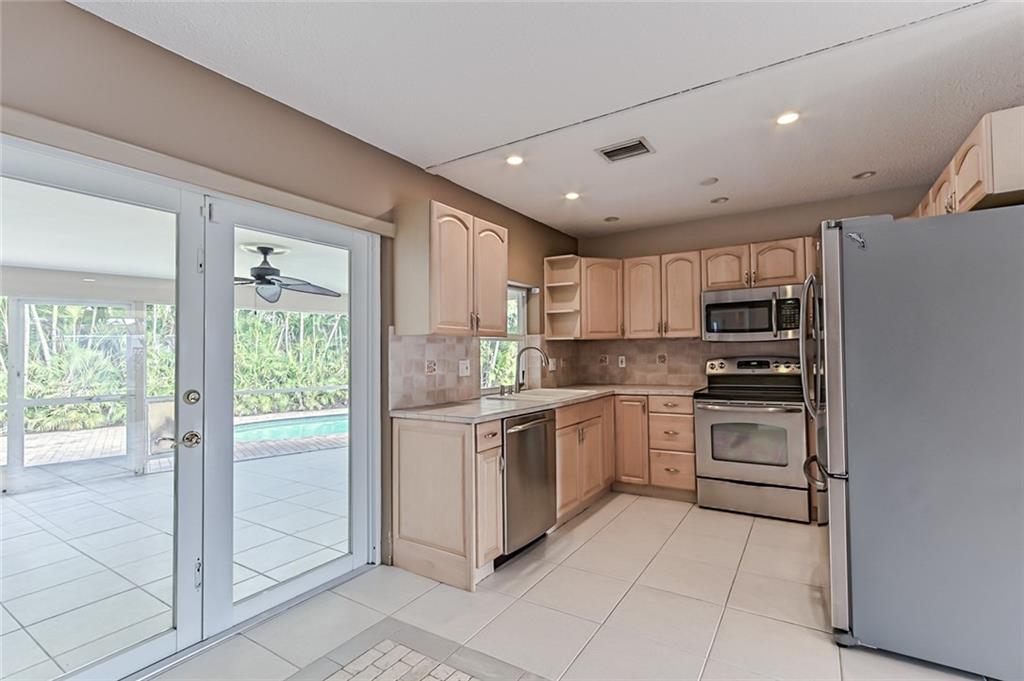This Home Qualifies for Conventional Loan with 3% Down. Spacious 3 Bedroom, 2 Bath home with open front porch on a fabulous corner lot. Features an updated kitchen with wood cabinets and stainless steel appliances. Updated bathrooms. Tile floors throughout. Fenced-In backyard is huge and private with a pool, covered/screened patio and additional outdoor patio space. Perfect for entertaining and for kids and pets to play. Plenty of room to park a Boat or RV. Great Neighborhood. Quiet and Family Friendly.