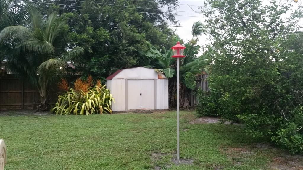 Buyers will adore this home! Cute and well cared for. Light and bright. Great size bedrooms. Tile flooring throughout, freshly painted exterior. Huge backyard with Coconut Palms, Lime and Banana trees, completely fenced in, including a shed. All window treatments and appliances stay. Sprinkler system on a well. Circular driveway. Desirable neighborhood, located on a quiet street with very little traffic. Close to shopping, easy access to major roads. No HOA fees. Adorable, Must See Property.