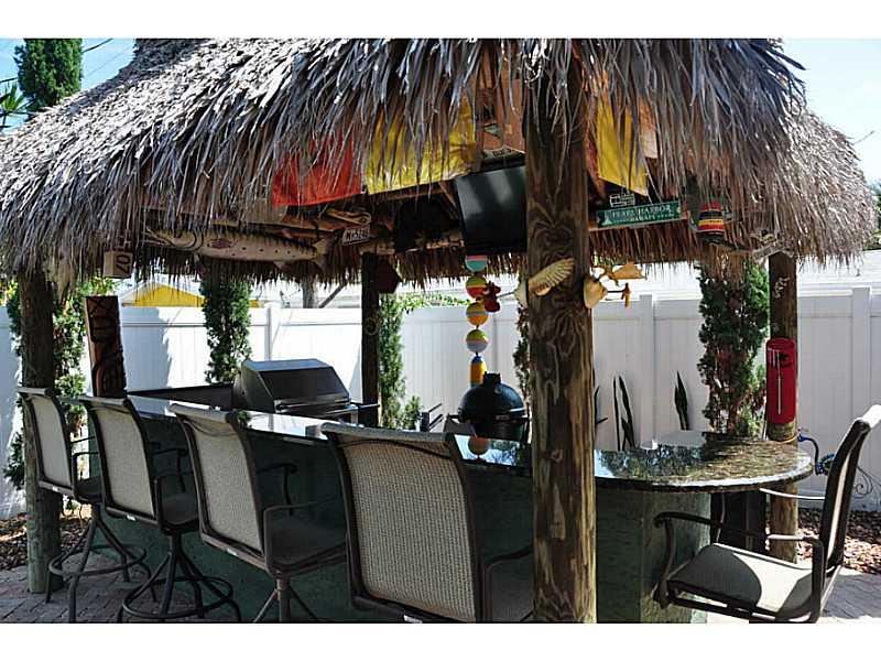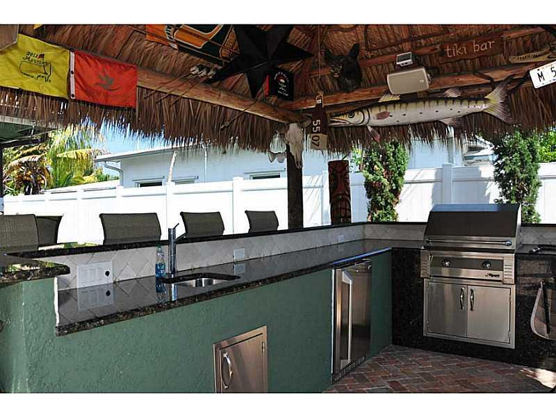 Beautifully remodeled and thought out! Open kitchen with granite counter tops & window sills, SS appliances, counter eating area, upgraded doors, crown & moldings, custom closets, impact windows, doors & garage doors, tropical landscaping, newer roof & AC , PVC fence, tropical landscaping, LED lighting & new sprinkler system, Chickee hut with granite counters & outdoor kitchen & high end appliances, pavers driveway & patio. Huge master walk in closet! Separate laundry rm and pantry area.