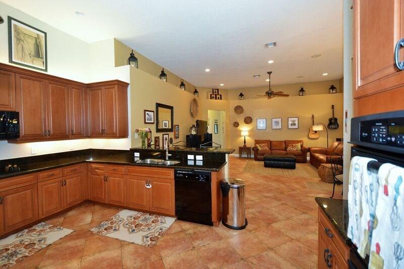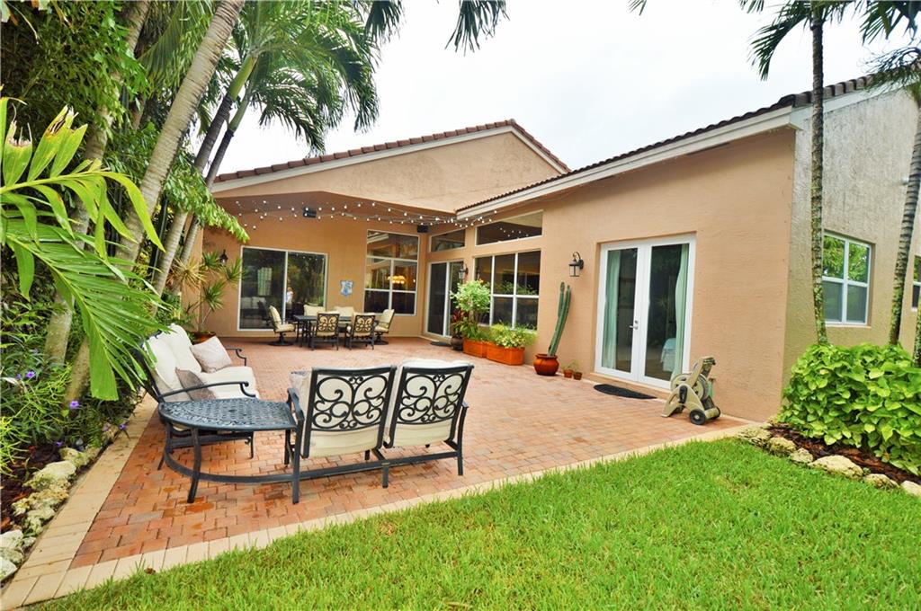 Single-story home in resort-style community of Sunset Lakes. Lg gourmet kitchen w/expansive cabinetry, granite countertops, dbl ovens, snackbar, above/below cabinetry lighting. Mstr bdrm has beautiful real wood flrs, his/hers oversized closets/dressing area. Mstr bath has sep his/her counters/sinks, lg tub/separate toilet rm. Secondary bdrms tile flring w/wood grain design. Spectacular backyard w/oversized patio, aluminum fencing, lush landscaping & covered sitting area. Protected by home security system