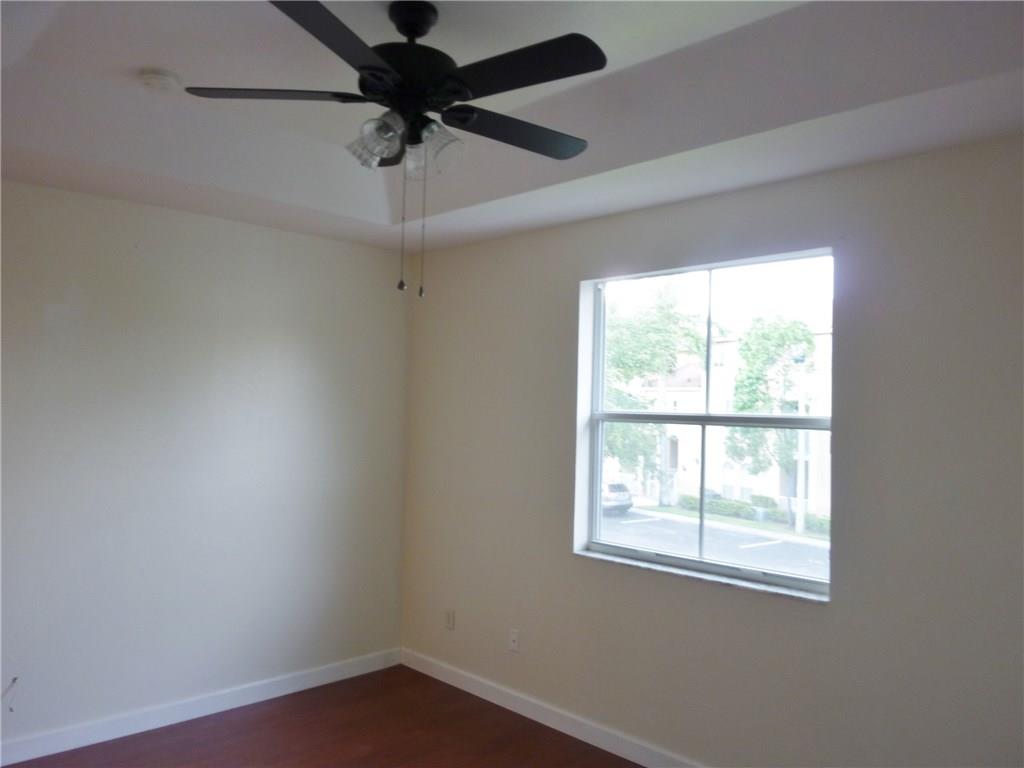 Rarely available 4 bedroom 3 full baths with bedroom and full bath on the first floor. There are only ten, 4/3's in the complex! Fenced back yard area. Tile floors downstairs and Wood Laminate on the stairs and upstairs. Community has a manned guard gate, pool, clubhouse and child play area. Very clean, bright and cheery unit. Ready to move in. Excellent location. (Only 2 cars allowed max. )