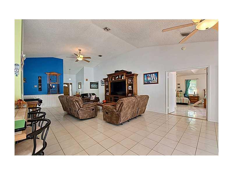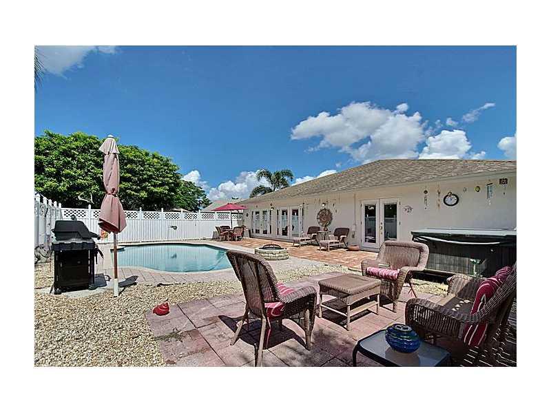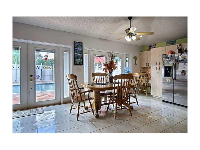 Spacious 3 bedroom 2 bathroom home in Parkwood Isles on large corner lot with tropical landscaping and water views. Open floorplan with large living, dining and kitchen area. Large master suite with walk in closet and french doors overlooking the pool. Sa lt water pool installed in 2005 with privacy fence and large side yards. Backyard has newly installed dock with water views. Newer roof, AC and tile throughout. Move-in Ready!