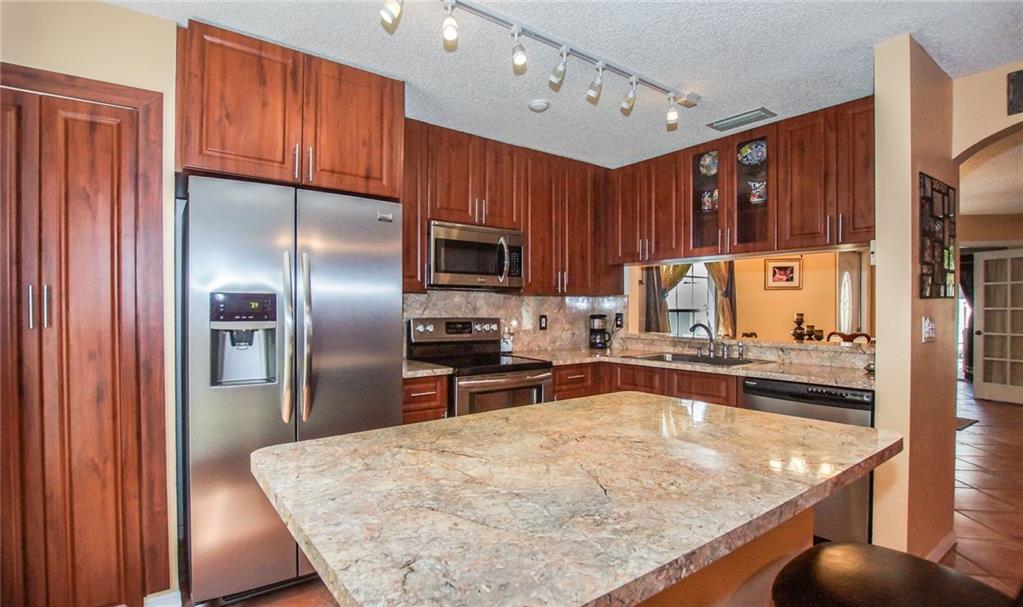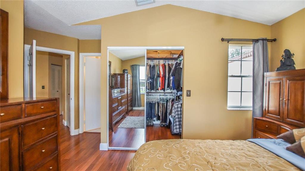 This Dream Home is a 4-2.5 and 1 car garage w/ customized cabinets & shelving. Living room w/cathedral ceilings Plus hurricane shatter proof tint on triple sliding glass doors & windows. Kitchen is remodeled. Brand new stainless steel appliances. Laundry room. Washer & dryer are 1 Y.O. Tile & wood panel floors. Master bedroom w/ customized walkin closet. Newer roof. Hurricane shutters. Fenced backyard. ADT motion & breakin alarm sys. A & B Schools. Community pool. Original Owners are motivated to sell!