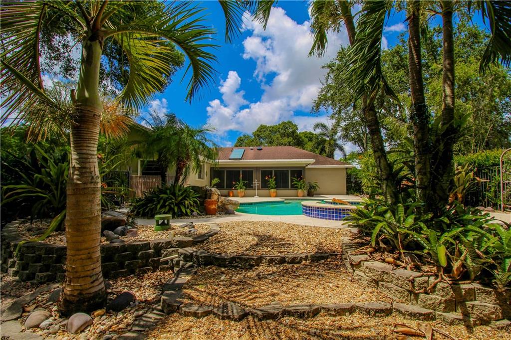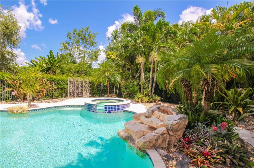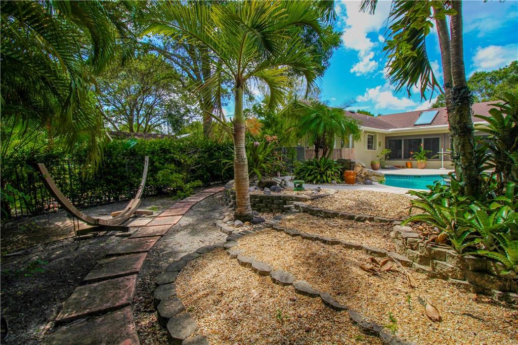 BUILDER'S ACRE IN DESIRABLE DAVIE OAKS! 4BR/2BA w/ a secluded tropical Paradise in your back yard! Salt Water Heated Pool w/ attached spa & amazing waterfall! 1,100 SF Patio w/Artistic Pavers. Upgraded Kitchen w/ Granite Countertops & Viking Appliances. Beautiful Pella Bay Window in Living Room. Impact Doors, Windows & Garage Door. Solar Water Heater & Solar Attic Fans. Lush landscaping w/ Poinciana, Orchid, Ylang Ylang, Cypress & Oak Trees! Enclosed Florida Room w/ a gorgeous Pool & Garden view!