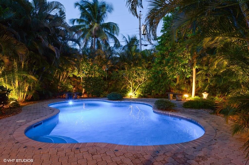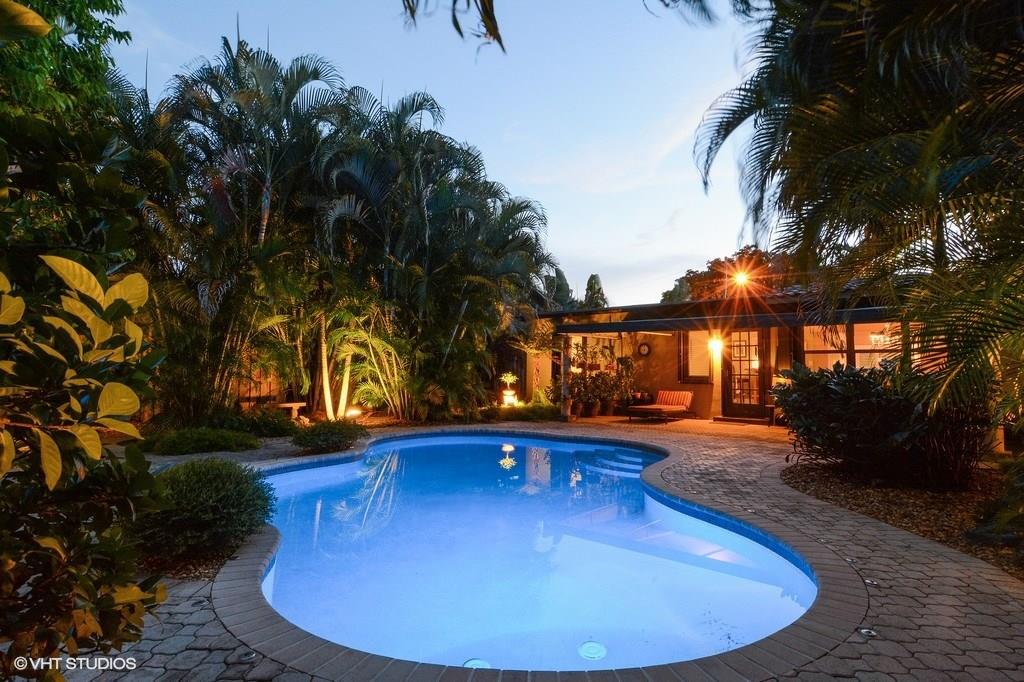 Beautifully updated, lushly landscaped pool home has all the amenities (and space!) you've been looking for. Four Bedrooms/Two Baths with expansive family/dining room overlooking a truly spectacular and very private tropical sanctuary with fragrant, flowering trees and heated freeform pool. The interior features hardwood and tile flooring, updated kitchen and baths, large closets, great storage, recessed LED lighting and all new impact windows! Newer Roof & Awnings, brick paver drive, patios & walkways.