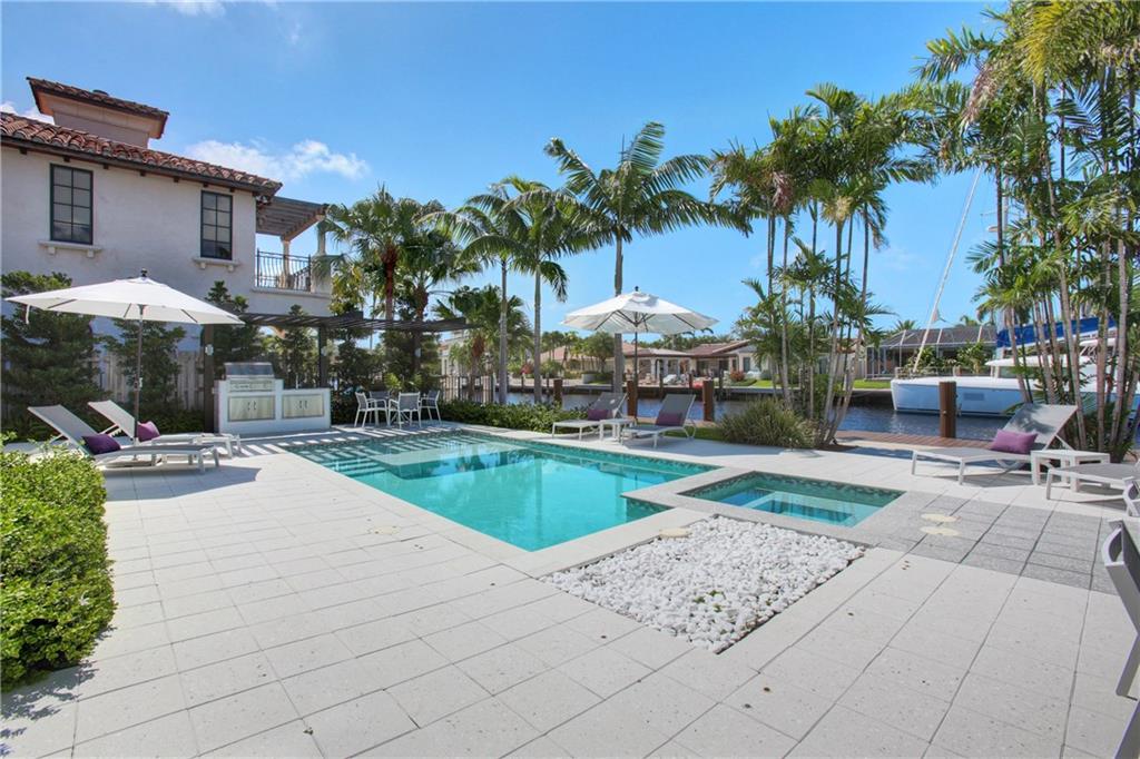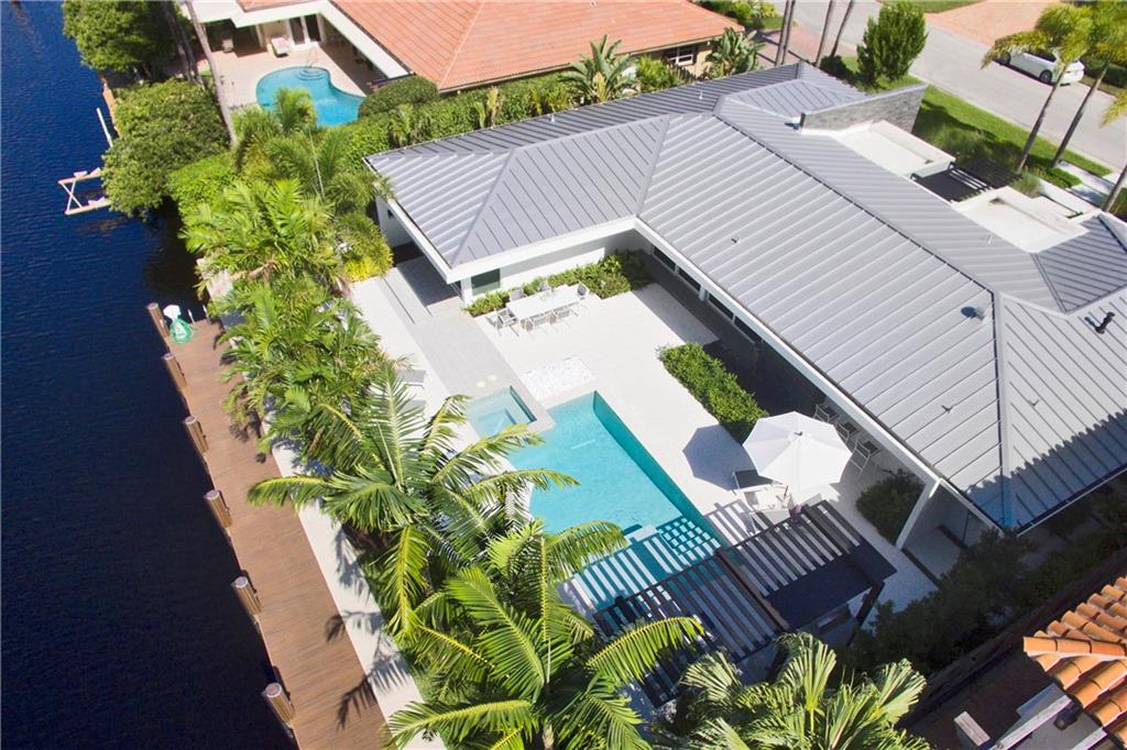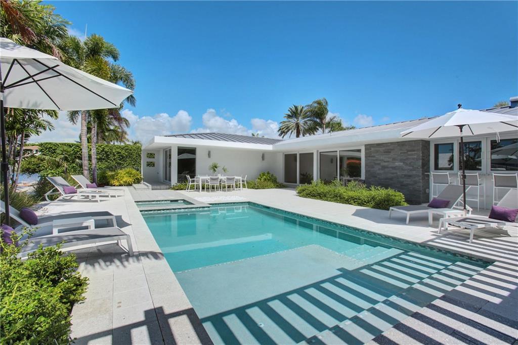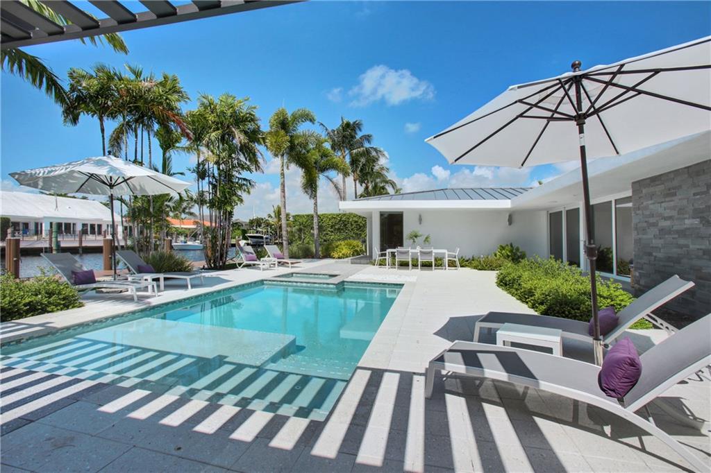 Completed in late 2015. Meticulous details prevail in this uniquely stylish and modern residence. 85 feet waterfront w/no fixed bridges and easy ocean access. 3 bedrooms all with en-suite plus an office. Jenn Air appliances, wine room and LED lighting throughout. New heated salt water pool & spa with cabana bath, natural gas in/out. Coral Ridge County Club and Landings community close to shopping, nightlife, restaurants and tropical seaside lifestyle. Visit my 3D Virtual Tour.