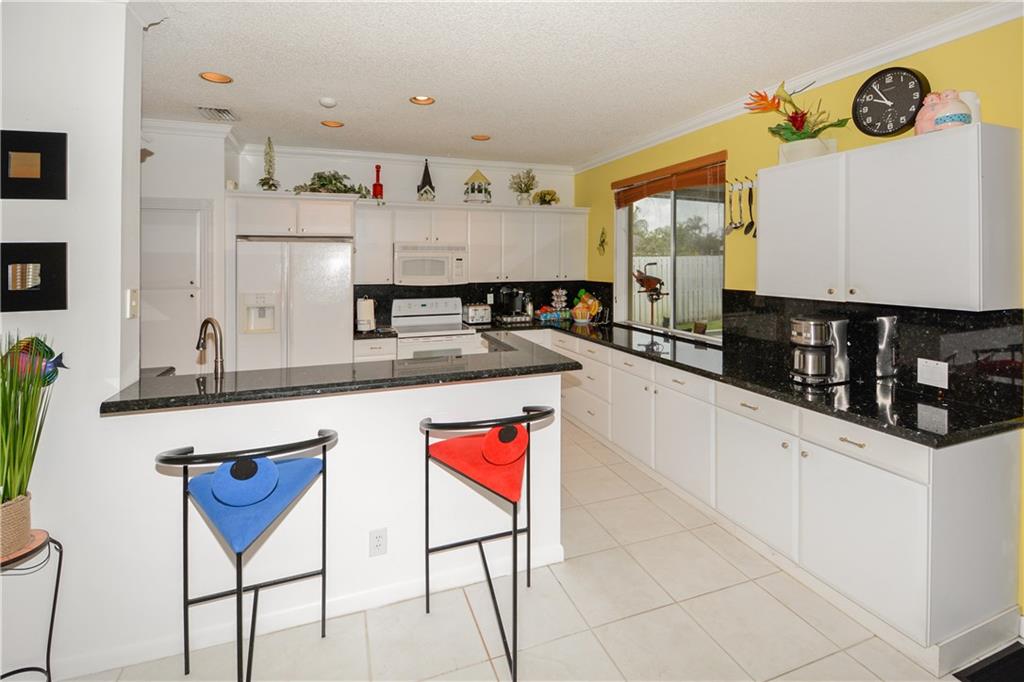 Welcome to this beautiful 2 story 4/2.5 property you can call HOME! Offering a great ambiance, clean, loved and bright. Space you can make your own, kitchen with fabulous white kitchen and black granite counter top, white/white appliances, and tile floors throughout. Owners definitely have updated this home, featuring crown moldings, remodeled bathrooms, laminate floors upstairs, extended screened covered patio, and a large, open green area for your kids to play. Great for family gatherings.