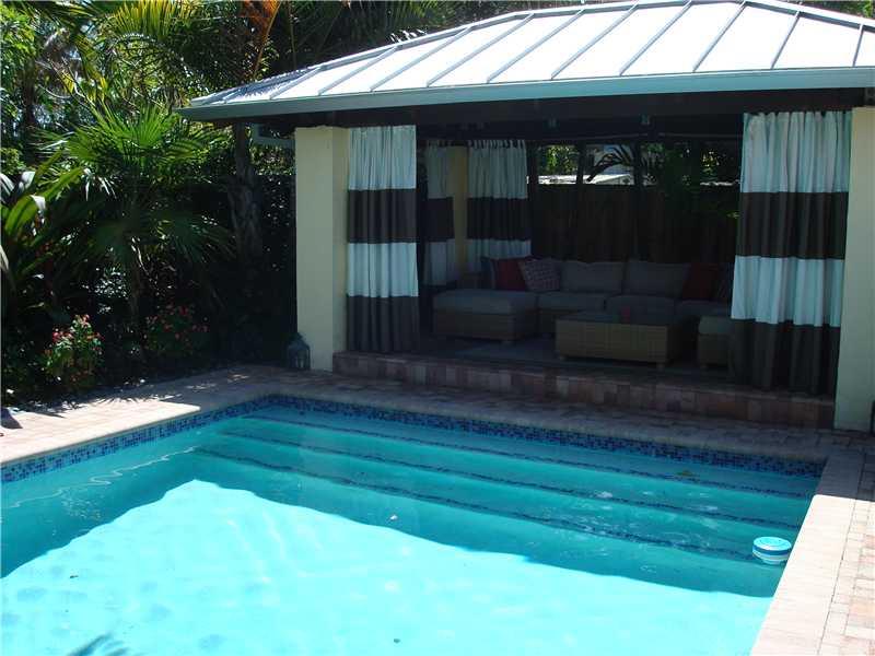 Designed by a prominent NY architect, this 3 bdrm 2 bath home is a self contained resort. The heated pool with water feature rests aside a stucco cabana with cedar beamed cilings and a metal roof. Meticulously renovated inside and out, this home boasts o f high tech smart security system where home can be monitored via iphone remotely, custom built cabinets, high end appliances, silestone counters, master bath with oversized walk in shower and glass brick, body sprays, and Grohe fixtures, and 2 zone a/c.