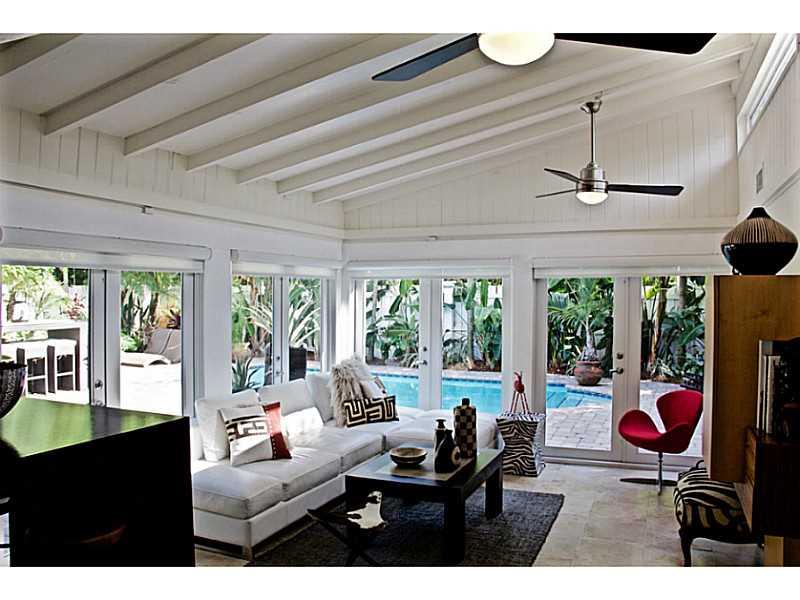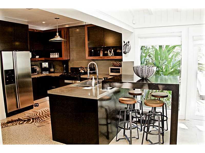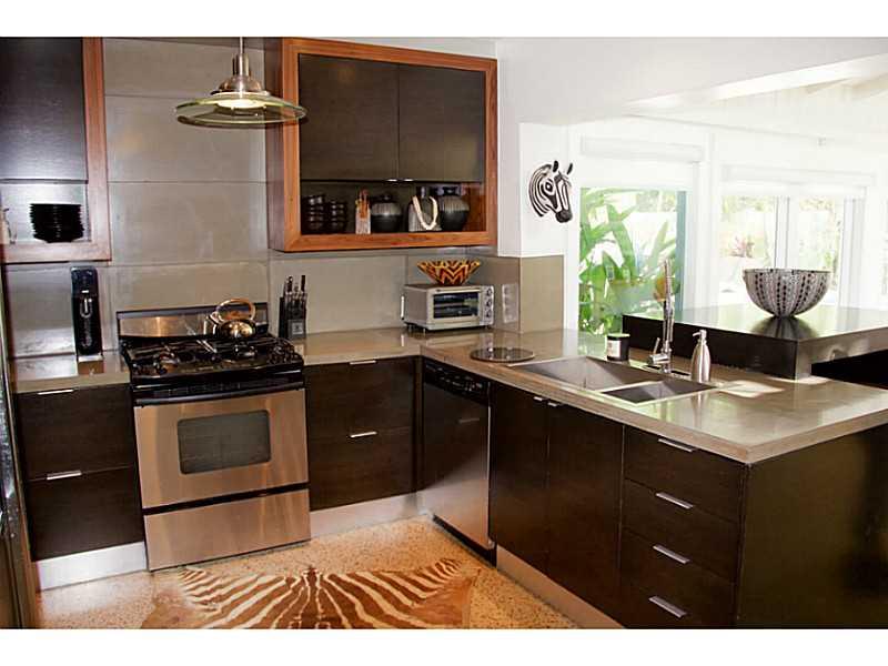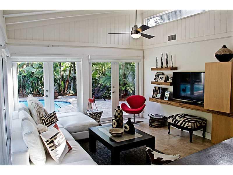 This beautifully renovated home features high-end modern updates and Florida charm. The expanded and light-filled floor plan features restored terrazzo floors, 3 bedrooms PLUS a den, 2 baths, and a family room with a dramatic and soaring wood beam ceiling overlooking the outdoor oasis and pool. Centrally located and open kitchen is perfect for entertaining and features one of a kind modern custom cabinetry, concrete countertops, and breakfast bar. Bonus built-in office nook perfect for working from home.