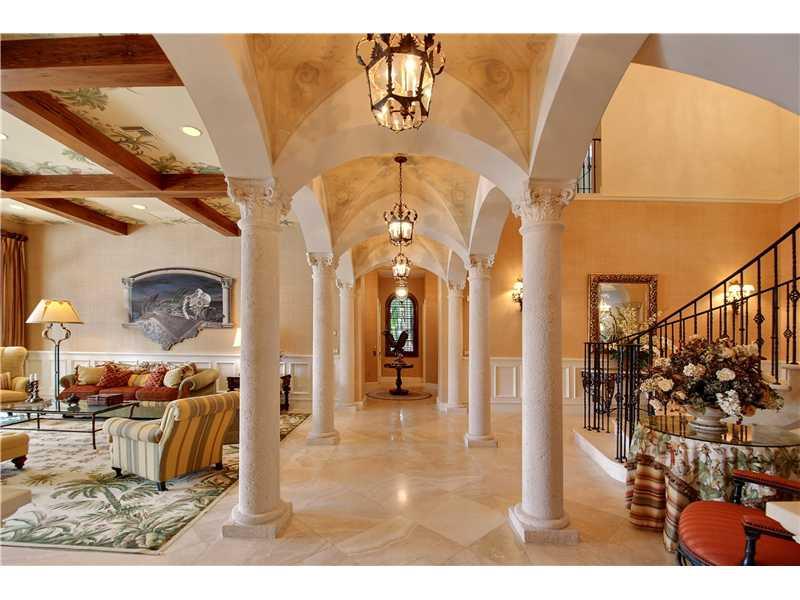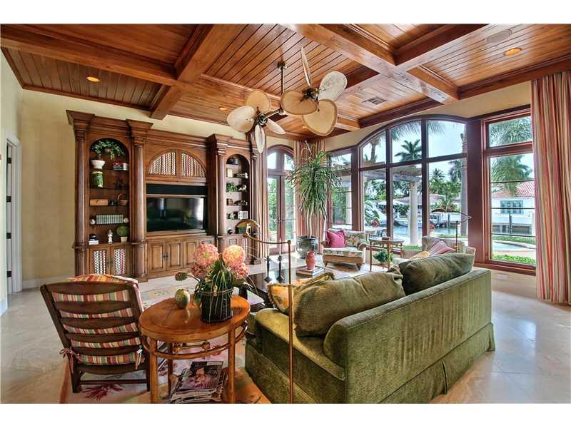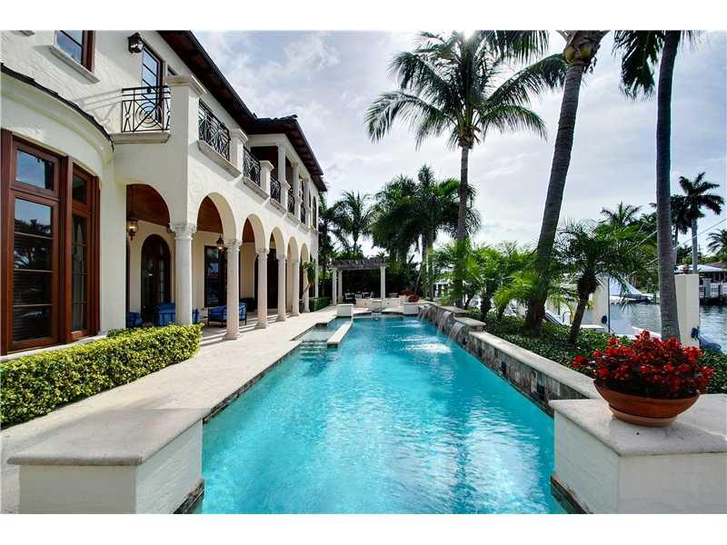 112' of deep water frontage! Exquisitely decorated with impeccable craftsmanship and magnificent details, this beautiful estate exemplifies design artistry. From the intricately hand painted ceilings to the gorgeous custom wall coverings, this home offers every luxury amenity imaginable. Custom features include a huge chef's kitchen, soaring ceilings, elevator, beautiful media room, home office overlooking the water and stunning pool/patio with river rock stream. Private Beach Club Membership available.