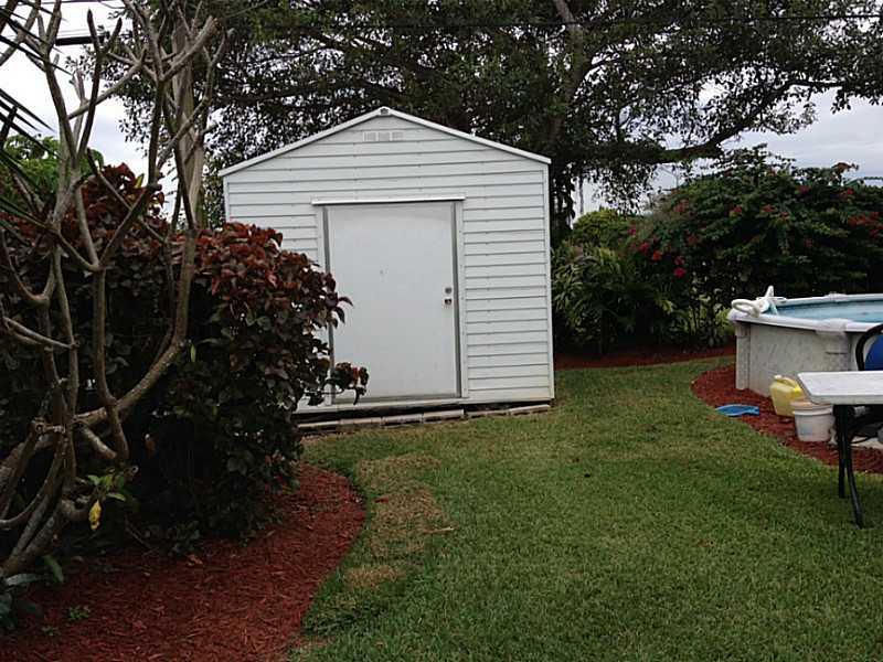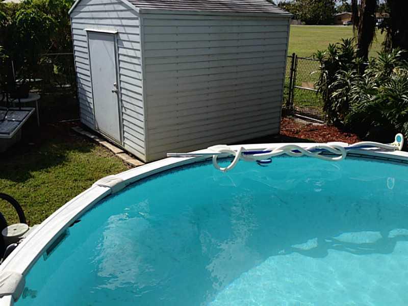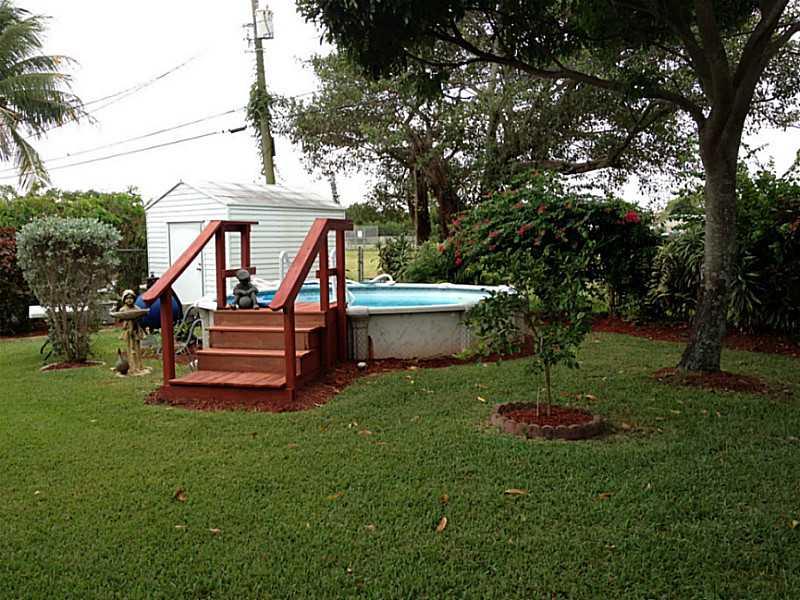 Charming, delightful "old Florida style" home with beautiful, spacious white Thomasville kitchen. Tiled living areas. Carpet in bedrooms. Florida room overlooks garden of eden yard so lusciously landscaped with wide variety of fruit and herbs. Not your ev eryday variety, this home features the "diamond of mango" trees. Above ground swimming pool. Shed approximately 10x10. Fenced yard. Large inside laundry/storage room. Security system. Hidden gem is move in ready. More details to follow.