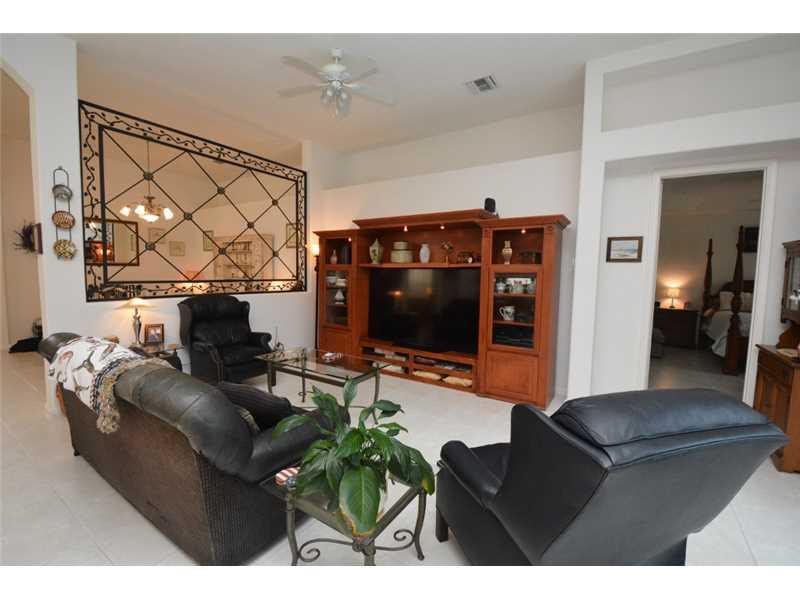 BEAUTIFUL ONE STORY HOME, GENTLY LIVED IN. GREAT NATURAL LIGHT MAKES IT VERY INVITING. NEW LIGHTING IN FOYER AND HALLWAYS. ALL NEW STAINLESS STEEL REFRIGERATOR, DISHWASHER, RANGE AND MICROWAVE. ALL TILE FLOORS THROUGHOUT HOME. NEWLY RESURFACED POOL IS PER FECTLY SITUATED IN THE PRIVATE BACKYARD WITH A SCREENED IN ENCLOSURE. NEW LANDSCAPING IN THE BACK OF THE HOUSE. HOME IS PROTECTED BY ACCORDION SHUTTERS AND A SECURITY SYSTEM.