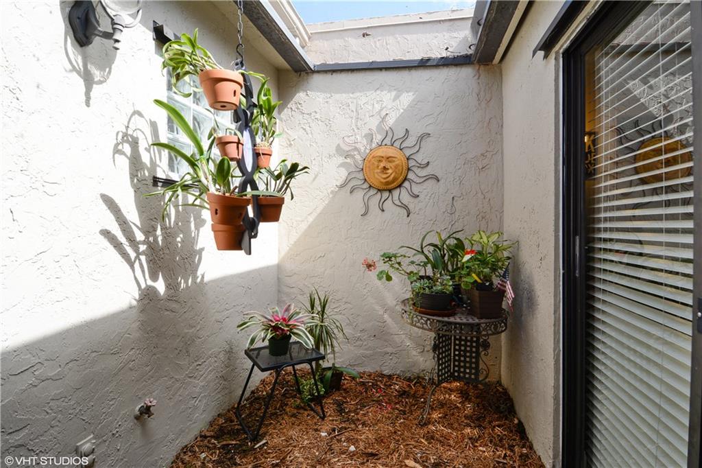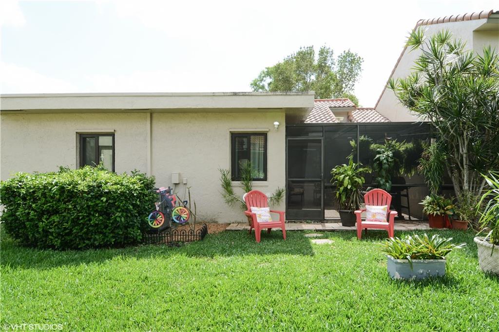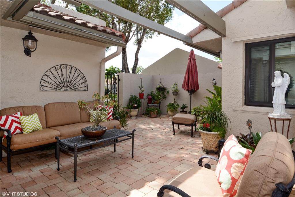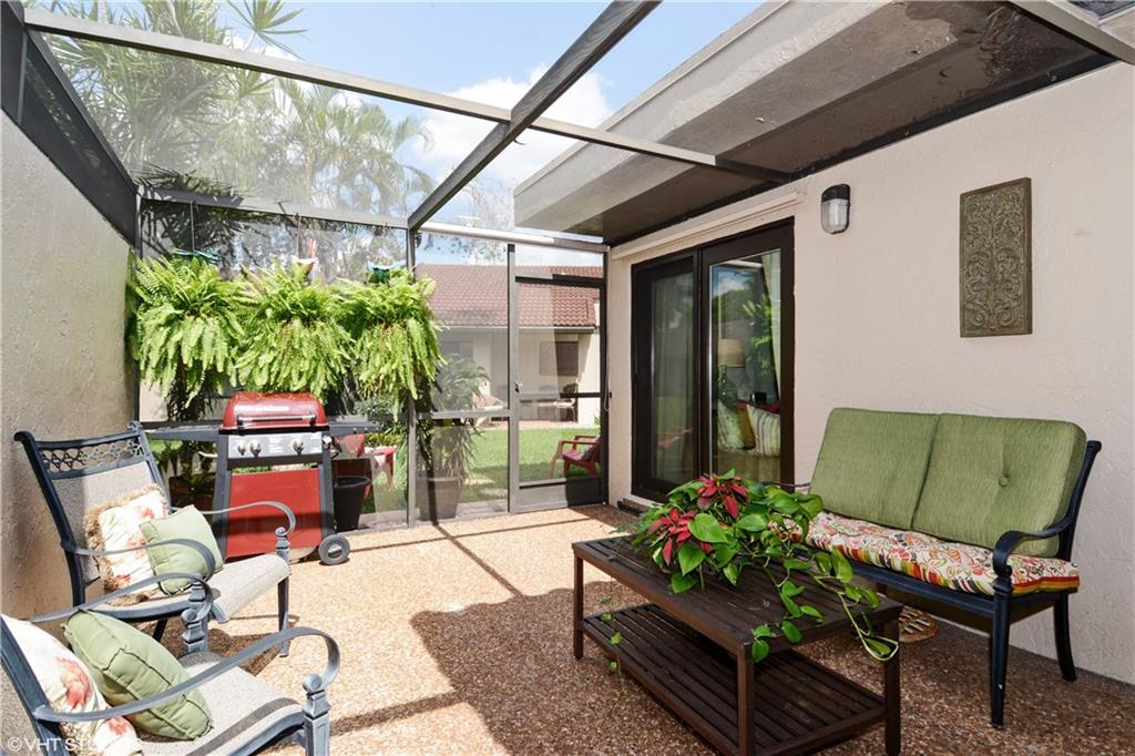 Remodeled Villa! Great upgrades throughout: Kitchen (wood cabinets, granite counter tops, S/S appliances, pantry organizers), Bathrooms done too! Ceramic tile throughout, newer A/C w/ UV blue light air purifier, popcorn ceiling removed, newer HWT. '07 Roof, '13 Impact Windows, slider have shutters, 15 W/D, Two Patios: front open, back screened & Atrium! Low HOA incl lawn, community pool area in Patio Village & Bonaventure club: gym, tennis, etc...centrally located! Home is in top condition! Dog on site!
