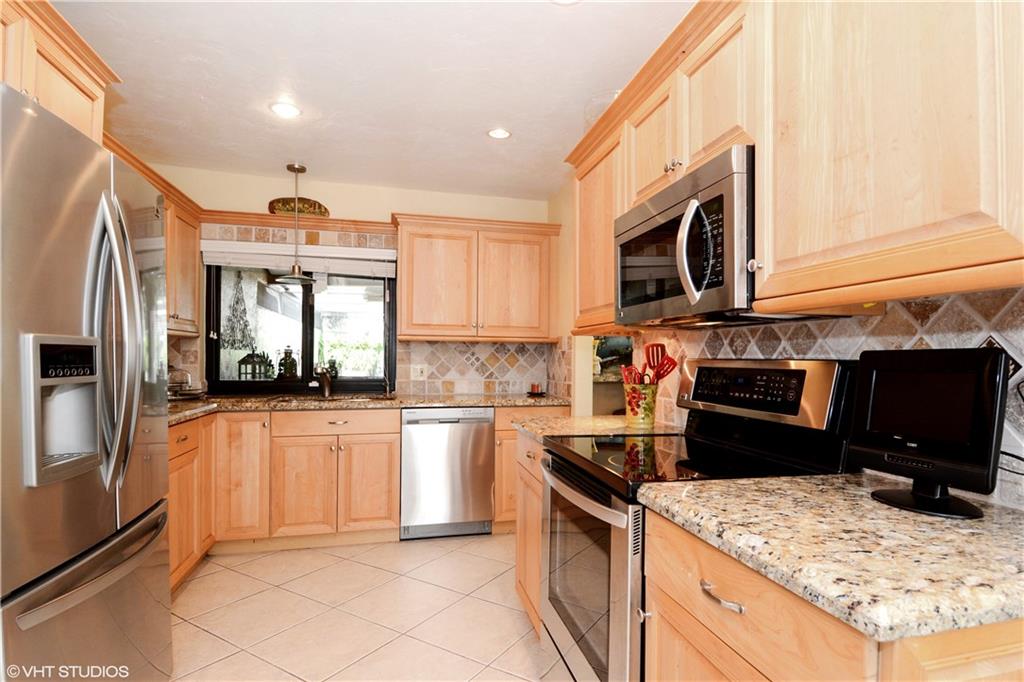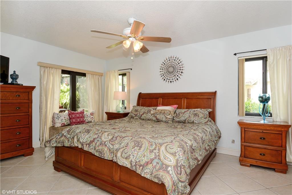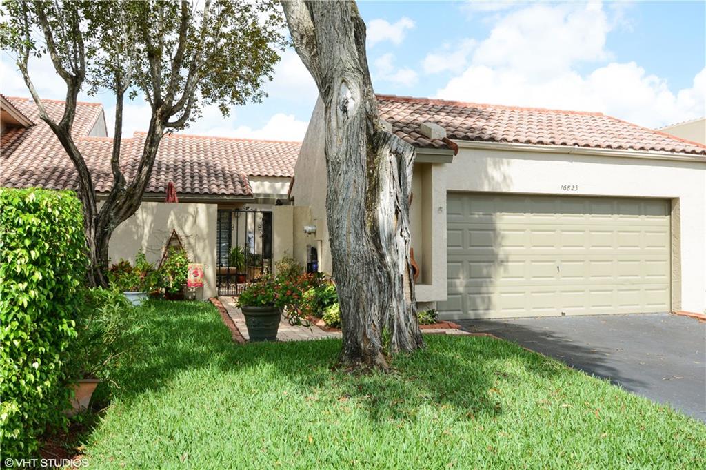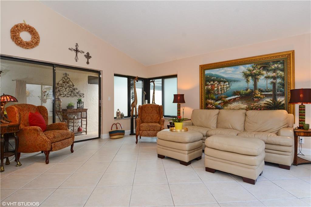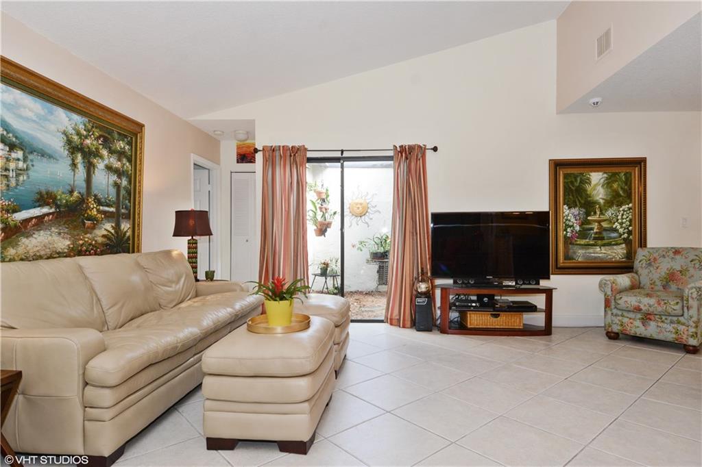Remodeled Villa! Great upgrades throughout: Kitchen (wood cabinets, granite counter tops, S/S appliances, pantry organizers), Bathrooms done too! Ceramic tile throughout, newer A/C w/ UV blue light air purifier, popcorn ceiling removed, newer HWT. '07 Roof, '13 Impact Windows, slider have shutters, 15 W/D, Two Patios: front open, back screened & Atrium! Low HOA incl lawn, community pool area in Patio Village & Bonaventure club: gym, tennis, etc...centrally located! Home is in top condition! Dog on site!