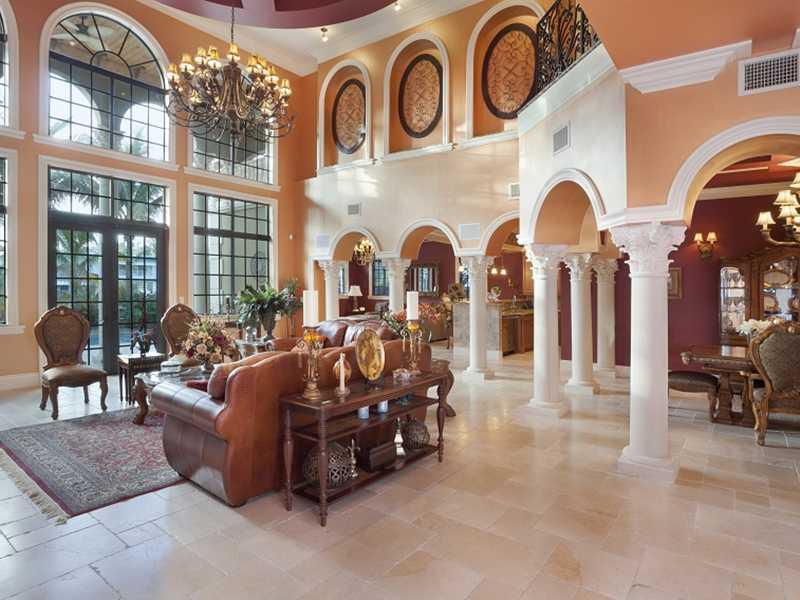 Venetian Palazzo Masterpiece Shows Like New. Two Story Entry is a Crowned by a Spectacular Dome & Dual Marble & Iron Staircases. Master Bath Includes Two Water Closets, Bidet, Two Seat Jacuzzi, Steam Shower. Arched Windows, Columns, & Interior Archways. G reat Room with Two Story Fireplace & Art Niches. Generous Ground Level Guest Suite. Elevator. Beautiful Marble & Wood Floors. Kitchen offers all Wolf Stainless Appliances. Summer Kitchen with Wet Bar. Venetian Plaster. Impact Glass. Furnishings Included.