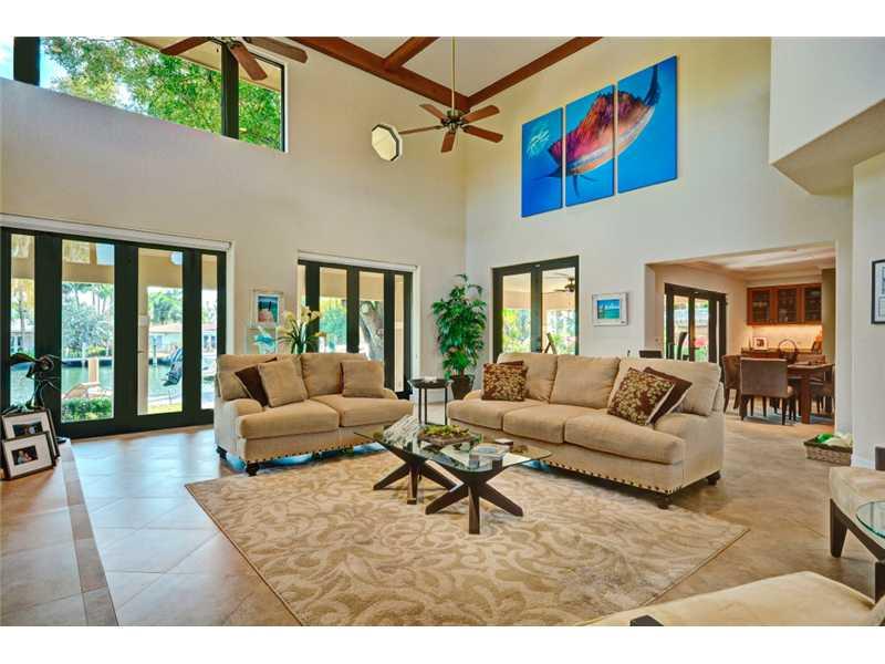 ** AS GOOD AS IT GETS! ** Outstanding Rio Vista home with 75' of water front and excellent dockage. Beautifully renovated...all new impact windows and doors and 24" Saturnia floors. Dramatic 20 ft. ceilings, open and bright with full wet bar and firepla ce, perfect for both indoor and outdoor entertaining, separate upstairs master suite. Complete tackle/hobby room. ** The pictures tell it all!! ** Just minutes to Port Everglades than to the Bahamas and beyond. Hurry on this one!