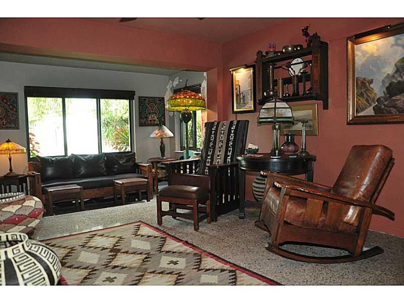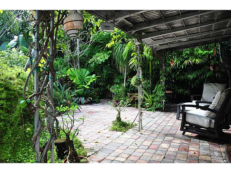 Simply charming home with sophisticated finishes and enchanted gardens. Beautifully remodeled kitchen with granite counters , gas stove, and backlit glass front cabinets. Stunning remodeled bathroom with granite shower and contemporary fixtures. Wood burn ing fireplace. Hurricane impact windows and doors. Fabulous gardens with fountains, paver stone paths and patios. Outdoor shower. Freestanding storage building. Custom crafted metal gates. This home is special in so many ways.
