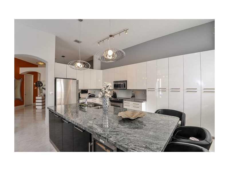 West Lake contemporary masterpiece. Beautifully renovated 4BR/2.5BA Pool home on lovely corner lot facing wide lake views. Foyer entrance into spacious open tiled living areas. White kitchen cabinetry features stainless steel appliances & granite counter tops overlooking pool patio. Upstairs loft family room with wood floors and double door entry into tranquil master bedroom & well-appointed master bath. Three additional bedrooms & bathroom complete the upstairs retreat area. Gated Community & amenities.