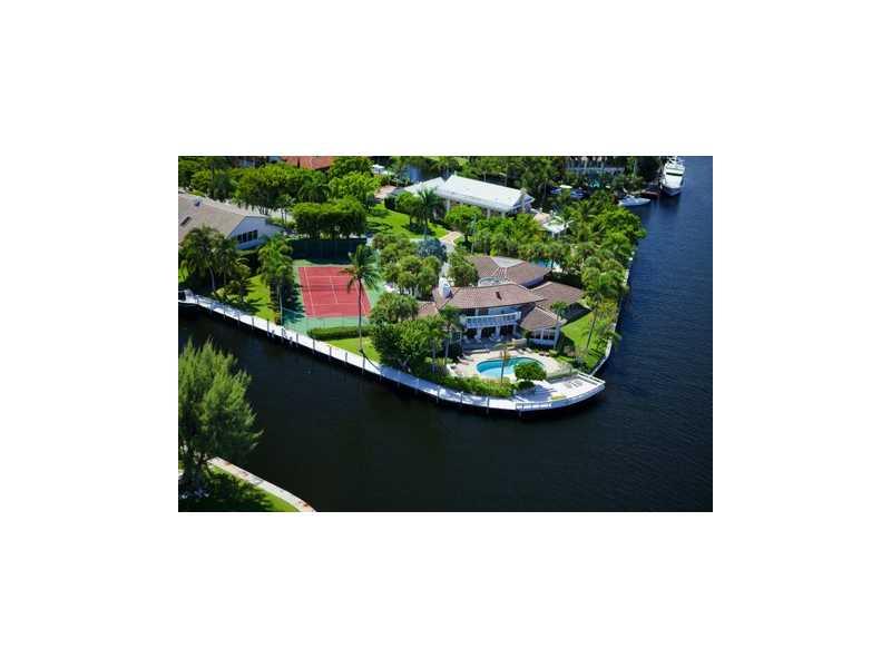 Yachtsman's paradise! Trophy point lot estate with 355ft on the water; 203' of straight frontage deepwater protected dock for mega yachts! Endless direct intracoastal views! Sits on two lots and the land totals an impressive 28,135 sqft, includes a tennis court. This meticulously maintained 5 bedroom home has a formal living, dining, game room, maid's quarters, fireplace and a private master suite. All rooms have stunning water views. Perfect for entertaining -- heated pool overlooking the intracoastal.