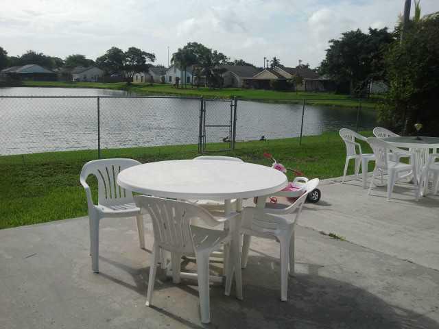 3/2 2 car garage plus additional den/office;lakefront; gorgeous lot; amazing granite wood custom kitchen; newer stainless appliances;eat in kitchen;newer windows;2005 roof;newer a/c;concretehardy board siding (andrew code); recently painted;fenced;newer l arger tile;laminate in 1 bedroom;master has adjacent extra room nursery/workout room/office- approx. 162sqft; sq ft is esti.as per owner;french doors to patio;large patio concrete slab;exc school distr;hurric panels;