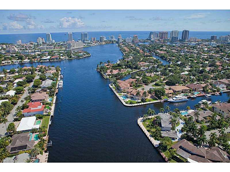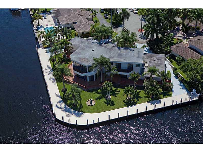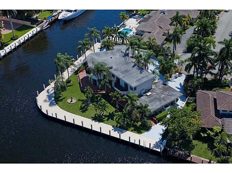 Spectacular Views from this 300 foot Las Olas Point lot on the north side of Las Olas. Newer 300 ft plus foot cement dock with deep water dockage for up to a 140-150 foot yacht with north dock previous draft of 10 feet at low tide. Dock contains both 3- Phase and single phase power. This 6 bedroom 6 bathroom home was used as a crew house by the previous owner and is listed for lot value. Build the house of your dreams and/or dock your yacht at this fabulous deep water point lot. Property sold "As-Is"