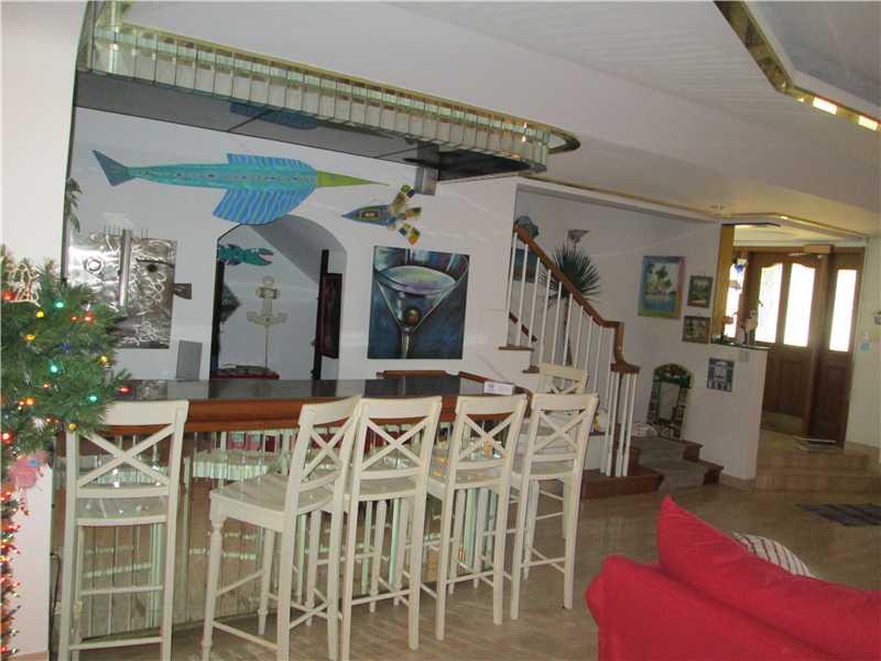 A true 'Artsy' home sitting directly across from the ocean. New Hurricane windows on all windows except 2 bay windows plus all extra protection with shutters throughout. Tiled throughout the downstairs and parquet floors in upstairs family room. All bed rooms have carpet. 2 new A/C units. A Spiral staircase goes up to the crow's nest with fantastic breath taking views of the ocean. Just walk across for your beach swim. Famous painter 'Pervis Young' painted art work on concrete wall. A must to see!