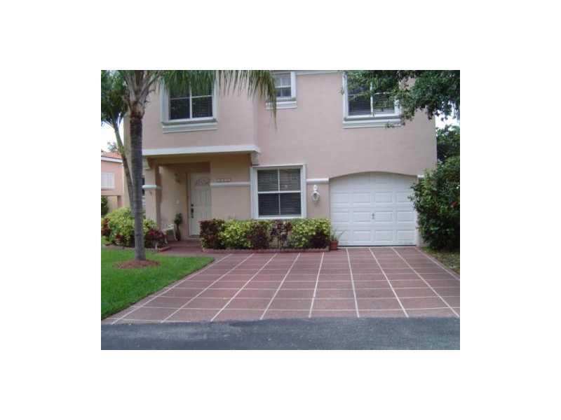 Lovely 3 bed. 2 1/2 bath with tile floor downstairs and carpet in bedrooms except for one that has tile. 3rd bedroom is open loft with a walk-in closet. Loft can be closed in. Screened patio faces lake, with fenced yard on the side. 1 car garage, plus 2 s paces for additional parking. Full set of hurricane shutters.Excellent location on a cul de sac. Community pool,gated entrance. Near beach and downtown Hollywood.New A.C.and water heater.