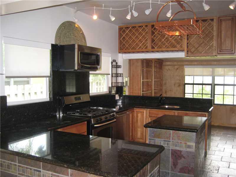 Walk or bike to Riverfront Las Olas. Stylish & totally remodeled. Dark wood & slate flooring.Granite kitchen counters w/stainless steel appliances & gas range. Built in wine racks. Stunning skylights throughout home. French doors lead to 1000 sq.ft deck-p erfect for entertaining or kid's play.Professionally wired for audio & video.Clear acrylic hurricane shutters whole house.2 Storage sheds.Fully fenced yard with intercom access security.Community center w/tennis courts & kid playground across street.