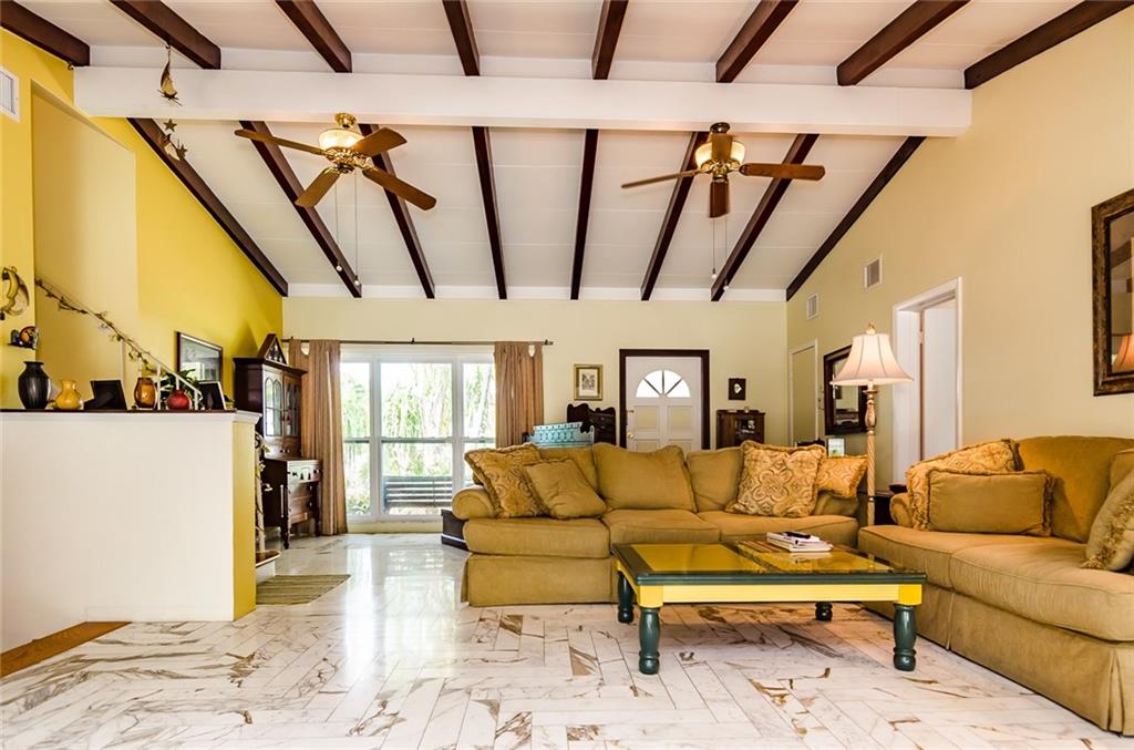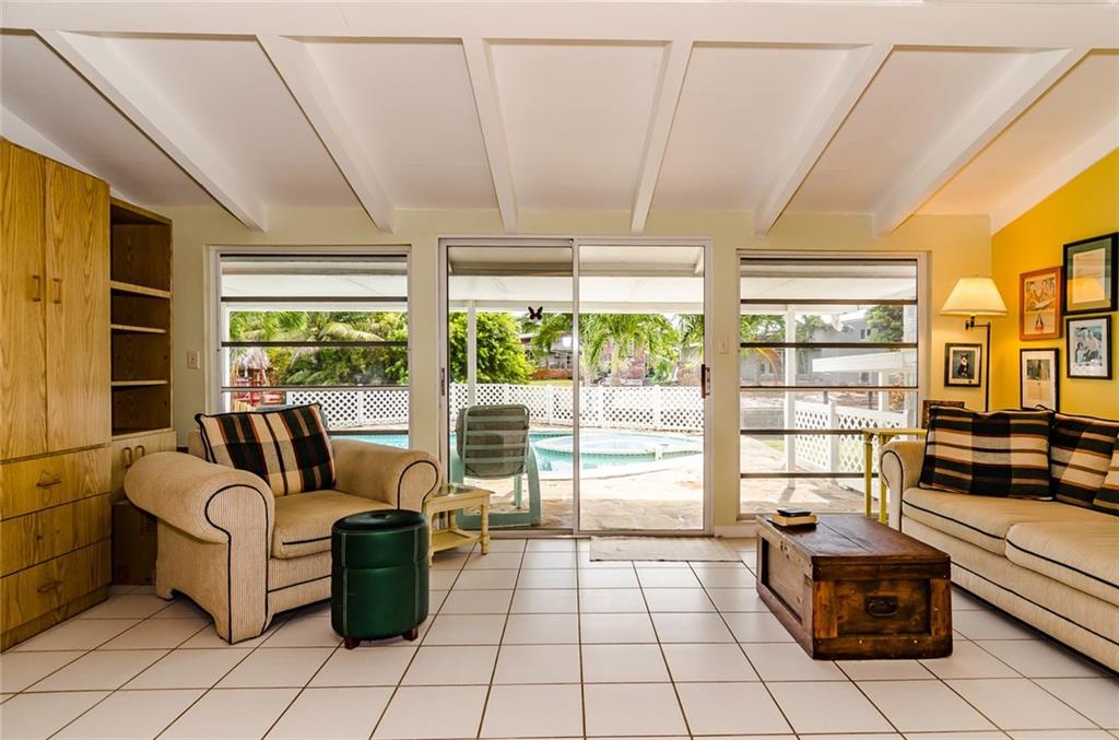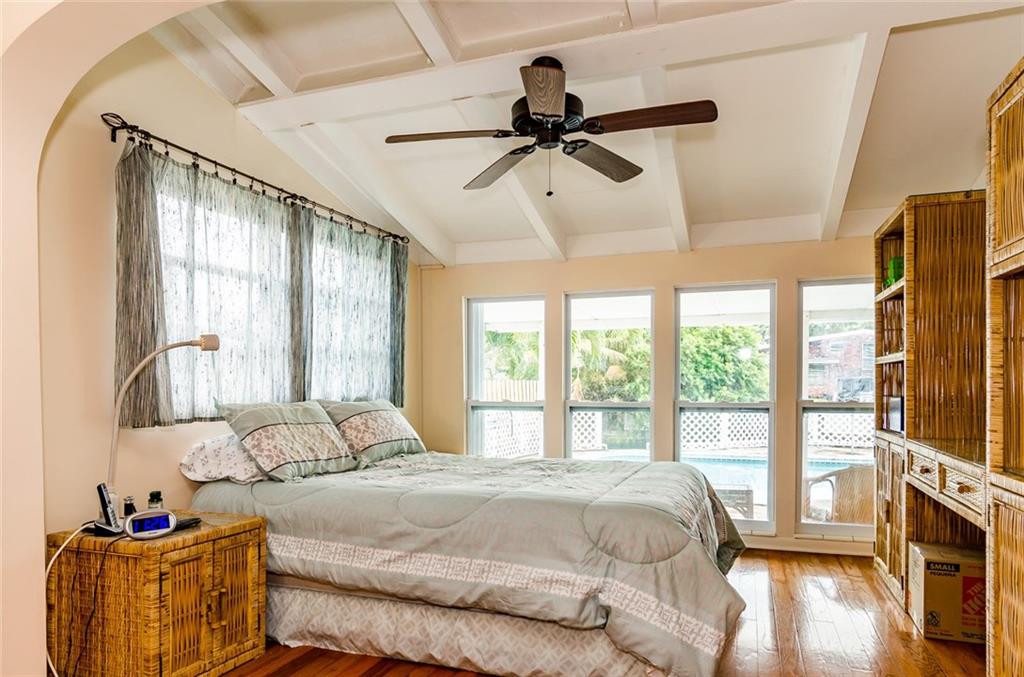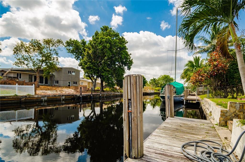 Attention Boaters! Dock your yacht behind this sprawling tri-level pool home. Entry level master bedroom W/sitting area looks out on pool & waterfront, Ensuite master bathroom. Living areas galore! Living room & family room. Two large bedrooms & bath upstairs with deck. Downstairs kitchen & dining room open to screened patio. Raised pool and spa with flagstone deck & covered patio. Accordion shutters, some newer windows. Dual air conditioners. Private dock W/water and power. The perfect safe harbor!