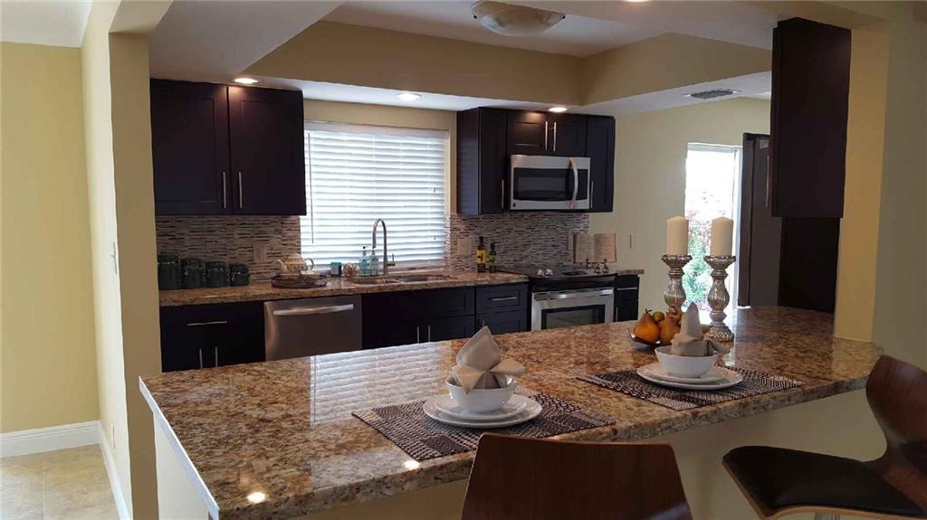 Move right in to this fully remodeled gem! 3 bed 2 bath with $90,000 remodel.Brand new roof, hurricane impact windows/sliding doors and garage door. Brand new 36" espresso kitchen, stainless appliances,granite counters,porcelain floors, new vanities, frameless shower doors, 2" blinds, marble pool deck, huge dock, landscaping ,open floorplan with separate living & family room. Beautiful pool view overlooking the water from most rooms.