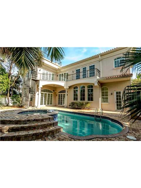 This is not a short sale. Stunning Mediterranean style estate close to the beach. Gourmet kitchen has solid stone countertops, custom wood cabinets, cooking island and top of the line appliances. Interior features are tile floors, plantation shutters, Fre nch doors & covered balconies overlooking the tropical pool & spa area. The master suite has a separate sitting area & wet bar. All Information recorded in the MLS intended to be accurate but cannot be guaranteed, buyer advised to verify. Sold As-Is.