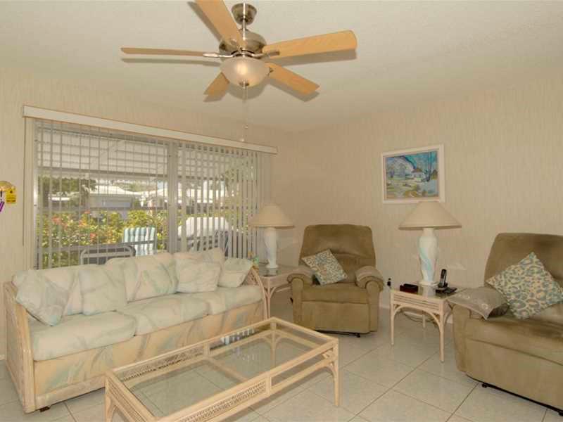 Immaculate home with free golf for owners NO LAND LEASE Tiled Newer kitchen appliances-stove, dishwasher, sink. Newer furniture stays with house. Beautiful, large patio for entertaining. Newer air conditioner Pets welcome. Senior community with two clubho uses and heated pools, community bus. Close to shopping, I95 and beach. Newer garage door. Extra refrigerator stays.