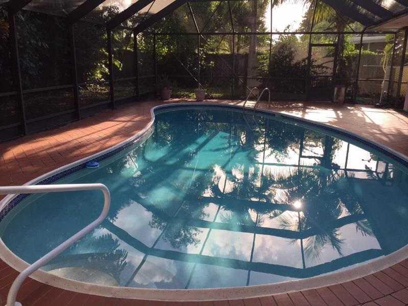 This very large 3/3 home with a 2 car garage has both a huge family room (500 sf) and a very big Master Bedroom overlooking the sparkling pool. Split bedrooms, 3 full baths, plenty of closets, large laundry room, 7 year new roof, extra outside storage, an d a big circular paver driveway, all on a tree lined winding street & just one mile to the Beach. One of the largest homes in the very popular Knoll Ridge neighborhood!