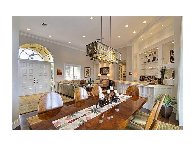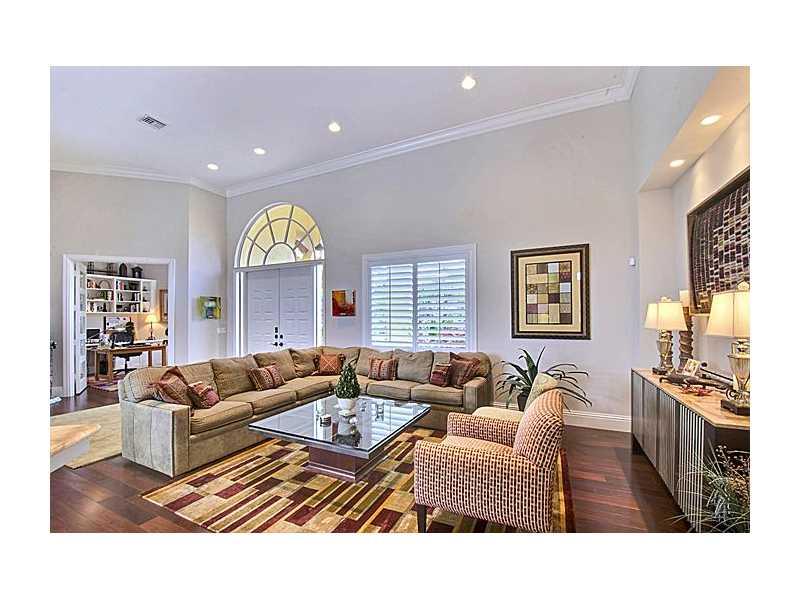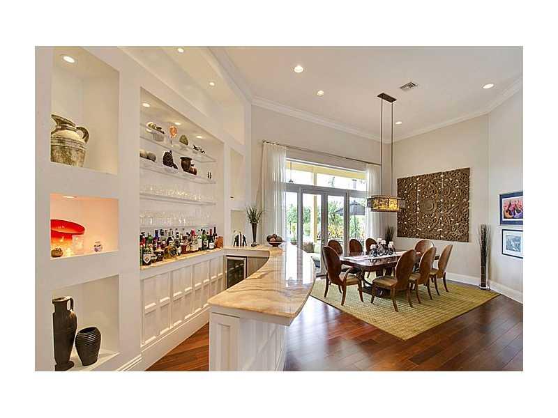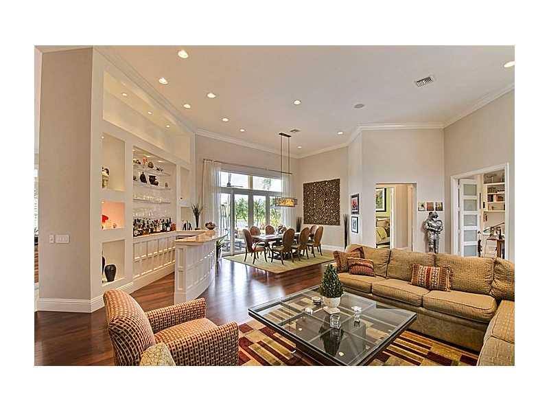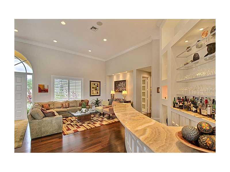 Soft Contemporary Masterpiece on an intimate tree-lined peninsula. Tranquil water views from living areas & master bedroom in this custom beautifully remodeled 4BR/3.5BA home with office & 2012 new Salt Water Pool. Quality features include: a striking mod ern bar, wood & custom 3'x3' tile floors, cooks kitchen with huge 3 sided center island, glass backsplash & top-of-the-line appliances, family room with built-in entertainment center, stylish renovated bathrooms. Impact windows* and doors. 2012 New Roof.