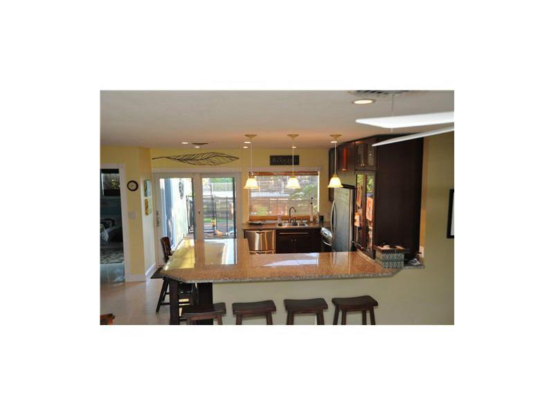 Impeccably remodeled 3/2 home on ocean access canal perfect for entertaining. Features include free form pool with child fence; newer kitchen with stainless appliances, granite tiles, counter seating for 7, recessed lighting; remodeled bathrooms with doub le sinks and double shower heads in master, claw foot tub in second bath; oversized laundry room with washer and dryer; hurricane windows and doors and home security system.