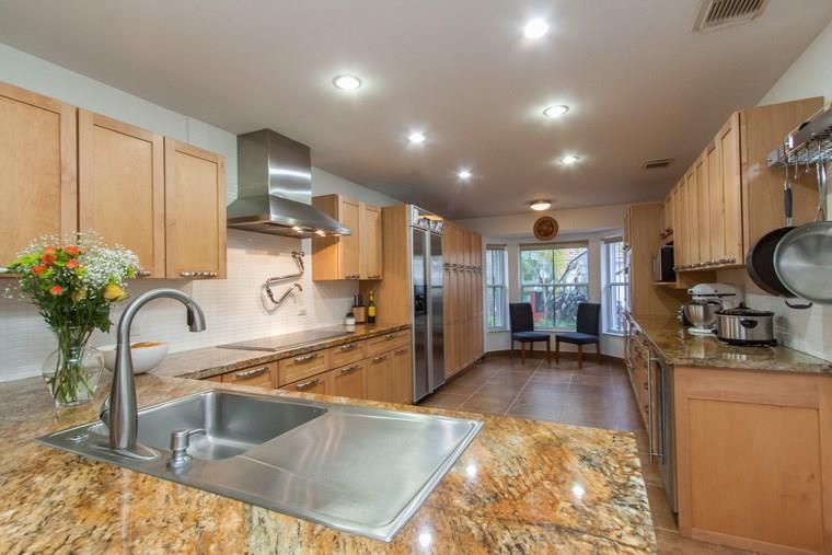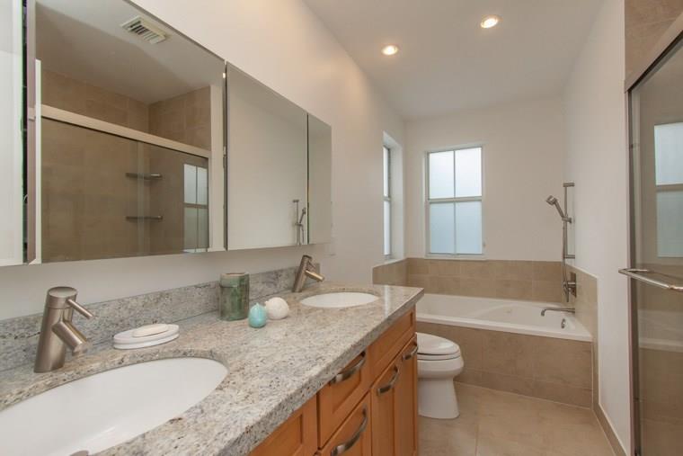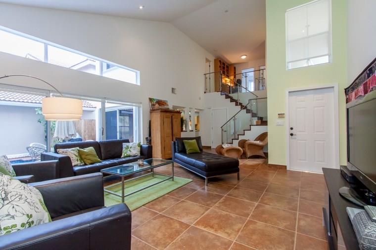 Modern sleek home has many high end upgrades:real wood floors on stairs, stairway has tempered glass with sleek stainless railing, 20x20 imported tiles in all living areas, tiled garage floor, bathroom fixtures are imported from Europe, professional chef kitchen with Wolf appliances inc double oven with convection, pot filler faucet,wine fridge! Vaulted ceilings, gated community, low maintenance, pristine pool, solar heater for the pool, new w/d and much more. Stunning home. Less than 1 Mile to the beach!