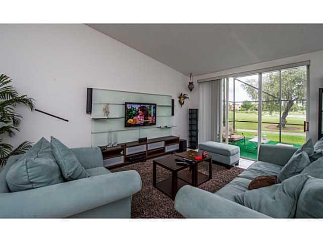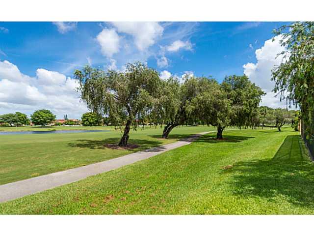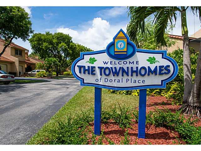 Unique corner unit townhouse in Doral Place. Open and bright floor plan with amazing golf views. The unit is very well mantained and features tile floor in the main living area and kitchen and wood floors in the bedrooms. Garage has been legally converte d into a 4th bedroom. The views from the screened patio are second to none. Enjoy the amenities of Doral Park Country Club, such as golf, tennis, gym, restaurants, etc. Grade A Schools in the Area.