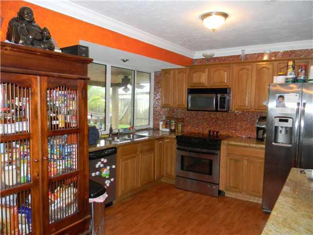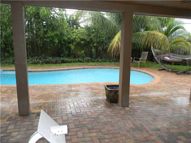 Renovated 3 bedroom/2 bath with slate bathrooms, beautiful kitchen, and laminate floors. Oversized corner lot and tropical fenced in yard with pool. The home has split bedrooms and a large covered patio along with impact windows. Cash only due to conditio n of roof.Second mortgage requires additional payoff of $4500.