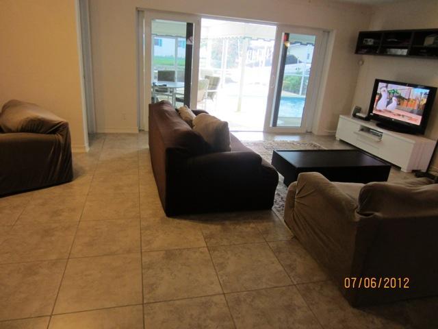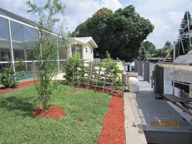 4 bedroom 3 bath home located on 80 feet of water, heated pool with screened in enclosure and large covered patio area. New appliances in the kitchen, new tile floors in living,dining rm, hall ways, plus 2 of the bedrooms. There is a 30 ft. deck plus a new boat hoist for up to a 28 boat. There is a variety of fruit trees in a lovely landscaped area. You are close to the beach, shops and restrauants. All of the windows and sliding glass doors have been replaced with hurricane impact glass.