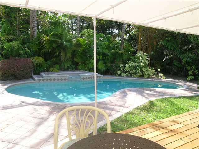 Move right into this 2/2 pool home offering a bright gourmet kitchen, large family room, hard wood floors, wood burning fireplace, garage and a custom free form pool and attached spa set in a wide lushly landscaped fenced in yard. Located on a wonderful " single family only" block walking distance to Las Olas.