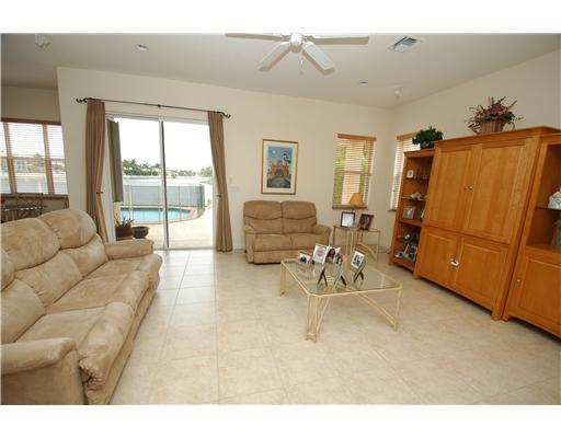 LOVELY 2 STORY HOME ON THE WATER W/POOL. LOCATED IN THE RESORT-STYLE COMMUNITY OF SUNSET LAKES. ENJOY A GOURMET KITCHEN W/LARGE CENTER ISLAND W/SINK. GRANITE COUNTER TOPS, STAINLESS STEEL APPLIANCES. TILE THROUGHOUT 1ST FLOOR, WOOD ON STAIRS AND UPPER FLO OR. HOME HAS MANY UPGRADES INCLUDING BUILT IN DESK AREA IN OPEN LOFT W/GRANITE COUNTERTOPS, CROWN MOLDING, CHAIR RAILINGS, 23'X12' REMOTE CONTROLLED AWNING, LANDSCAPE BORDERS AND ACCORDION SHUTTERS.