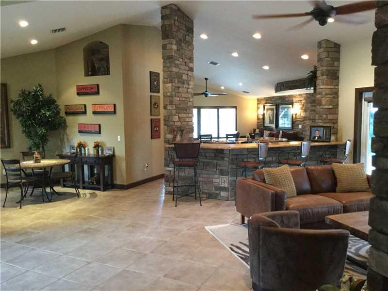 Just bring your toothbrush and horses! Immaculate 5 bedroom home on approximately 2 acres! Sale includes parcel #504015010399. Roof 5 years old, Impact windows and doors, remodeled kitchen and bathrooms, 2 barns with 4 oversized stalls. Easily converts to 8 stalls. Pavilion could possibly be another barn. Completely fenced property. Wooden plantation shutters! Custom stonework! Built out closet cabinetry, Pantry, recessed lighting, Vaulted ceilings, custom bathroom vanities, custom window treatments
