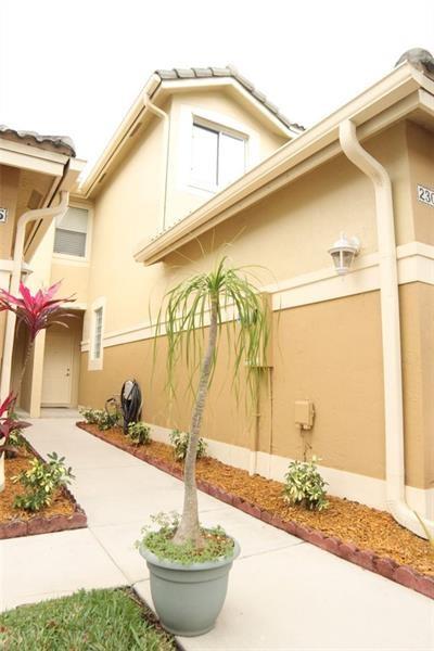 Spacious two story 3 Bedroom 2/1 baths townhouse in gated community in SAN MATEO. Screened in covered paved patio, attached garage, No neighbors at the back, everglades view, tile flooring downstairs, 1 year old central A/C, in laundry unit, Kitchen with stainless steel appliances. Community pool and playground. Pet friendly. Best Schools in Weston !