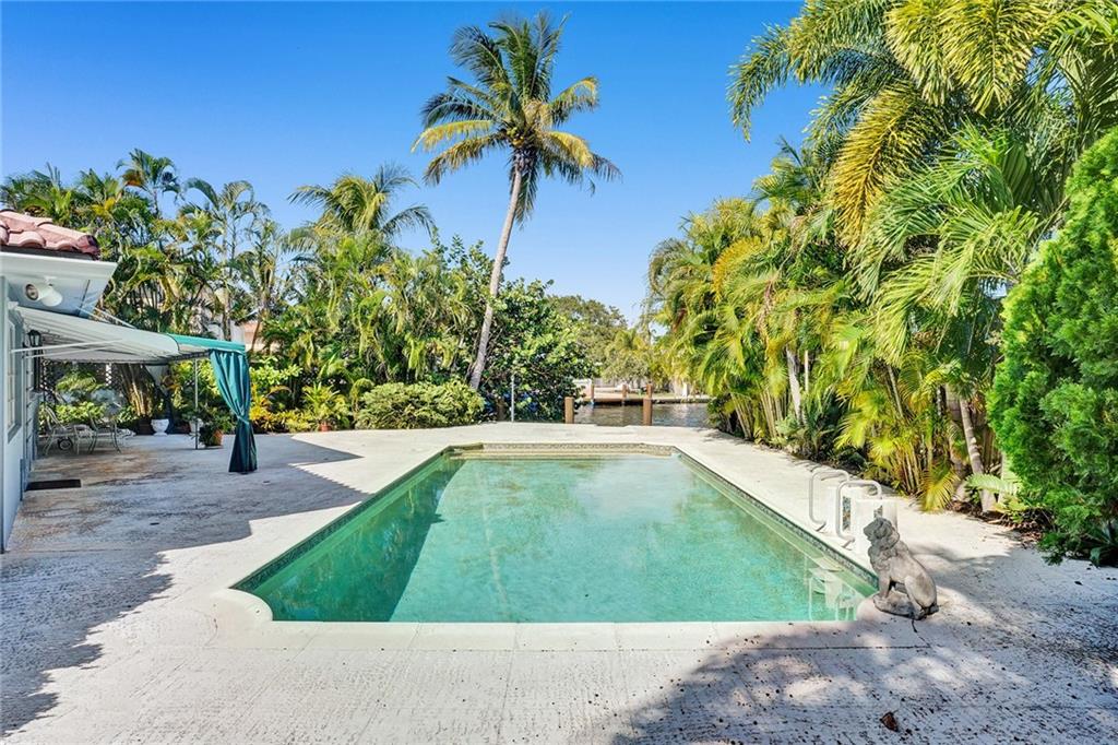 Privately situated in Coral Ridge on a lushly landscaped 14,000+ sf corner lot, is this classic mid-60’s home with lovely curb appeal. Expansive water views on a wide canal (115’ wide). The spacious interior with water views, large eat-in kitchen, various living areas, storage throughout, and three bedrooms each with walk-in closets. Private back patio with large deck, surrounding an oversized pool. 2 car air conditioned garage with shelving. All is in original condition and retains classic architectural features but can updated as one desires. Located in Bayview Elementary school district!