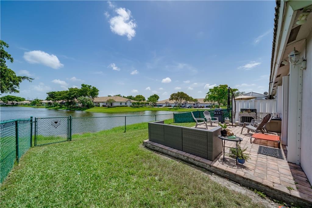 Lakefront townhouse with beautiful long views of lake. This 3 bedroom 2 bathroom corner unit is located in the gated community of Village of Renaissance. Great outdoor patio for dining and entertaining. Laminate wood and tile floors throughout the property. Spacious main bedroom with a walk in closet. Attached one car garage with guest parking close by. Hoa fee includes lawn maintenance and more. Accordion shutters. Situated in Miramar close to Shops, Restaurants, Educational and Medical facilities.