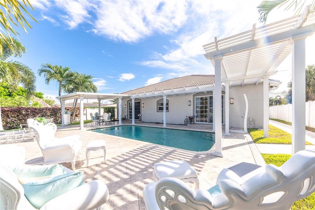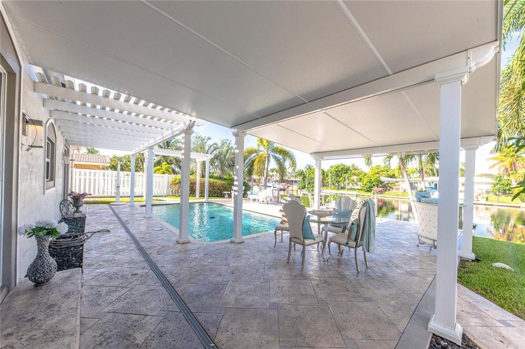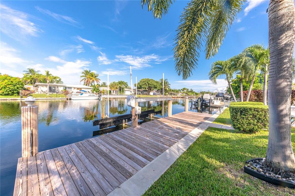 Beautiful 2008 constructed home with high ceilings, incredible open floor plan with 70 ft on the waterfront, new dock & 12k boat lift! Great curb appeal and grand entryway. All bedrooms are suite style with full baths. The kitchen offers solid white wood cabinets, stainless appliances, new backsplash with breakfast bar. The master suite has a sitting area and sliders to the pool. Master bath has a jacuzzi tub and shower combo. All rooms are a great size and have a nice flow. All impact windows and doors throughout. The backyard has a large pool with muti-color lighting, incredible sunsets, covered patio & pergola's. The home can be sold turnkey furnished. Decorated professionally by Boca Lavish. The home is bordering the incredible Pompano Beach CRA! Located on a wide private canal!