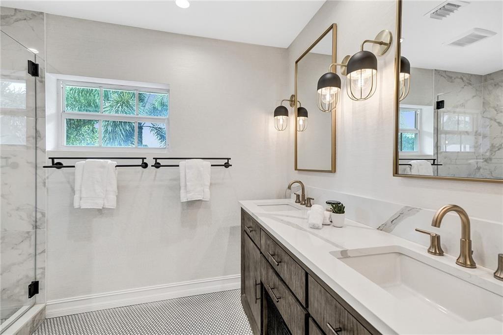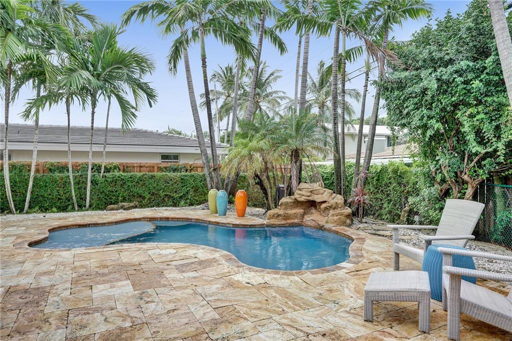 Spectacular 3 bedroom 3.5 bath + office home in Sunrise Intracoastal. Gourmet kitchen features white shaker cabinetry, upgraded stainless steel appliances and quartz countertops. Fantastic living space with vaulted ceilings in the living room. First floor office/playroom with adjoining bathroom. Porcelain tile on first floor and hardwood flooring on second floor. Large master suite with walk-in closet, updated master bath and private patio. Spacious secondary bedrooms. Interior laundry room. Impact windows! Beautiful backyard boasts heated saltwater pool with waterfall, screened-in patio surrounded by lush landscaping. Beautiful backyard boasts heated saltwater pool with waterfall, screened-in patio surrounded by lush landscaping. Located in Bayview Elementary school district.